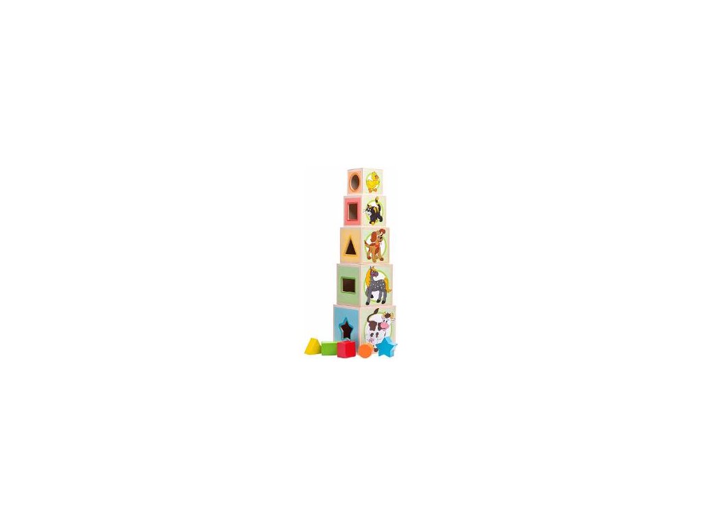 VkládačkaWOODY Věž z 5ti kostek Zvířátka