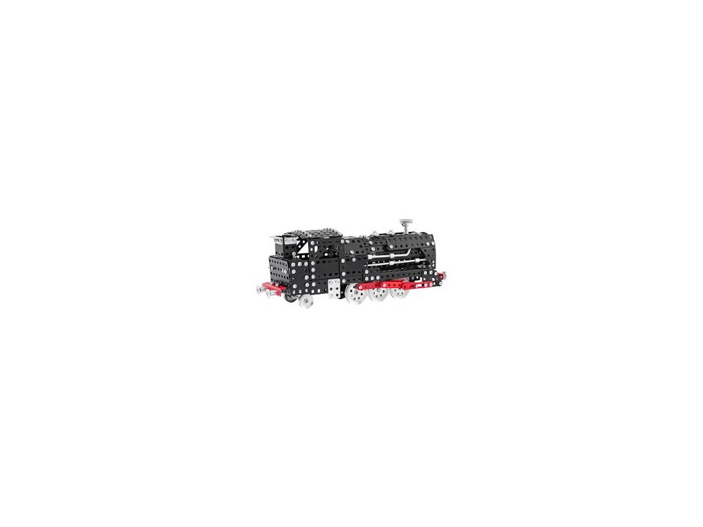 Kovový model lokomotivy v ikonické černé barvě s červenými prvky