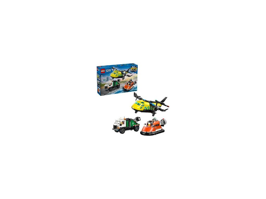 Tato stavebnice obsahuje záchranné letadlo, vznášedlo pobřežní stráže a servisní vozidlo LEGO® City a minifigurku zdravotníka, pobřežní stráže a horského záchranáře