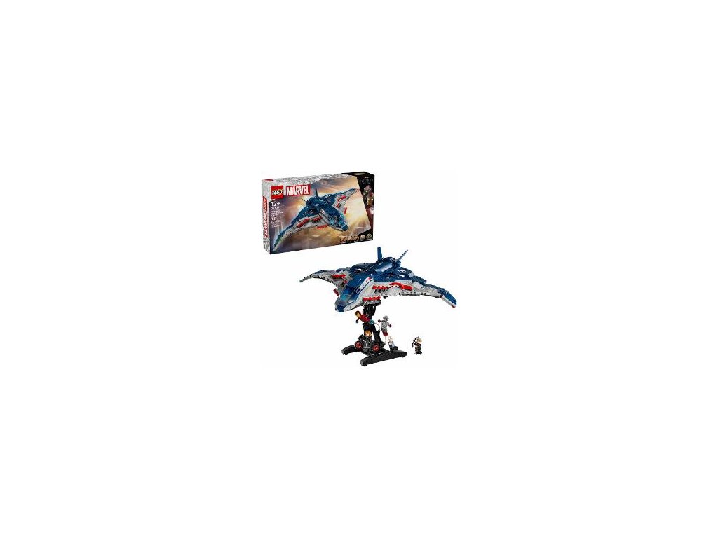 Stavebnice pro děti z 1131 dílků – Hotový model stíhačky Quinjet měří přes 28 cm na výšku, 30 cm na délku a 45 cm na šířku