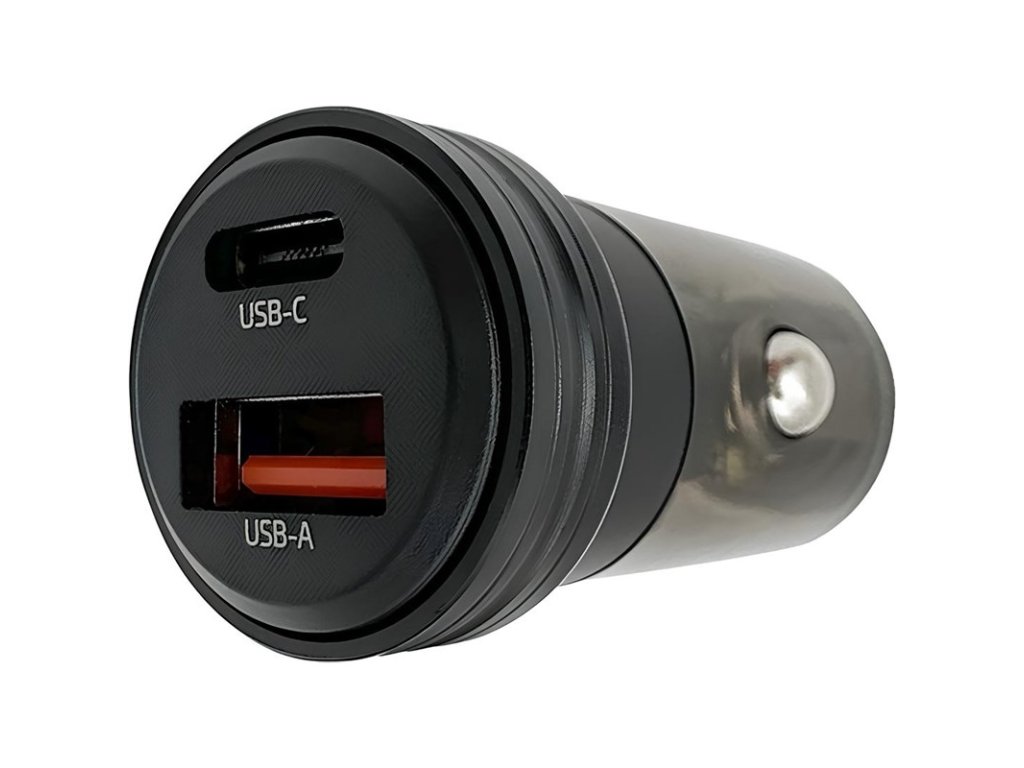 30W USB-C a USB-A nabíjecí adaptér do auta. Vstup: 12-24V. Výstupy: USB-C PD30W (5V-3A, 9V-3A, 12V-2,5A) a USB-A QC3.0 (5V-3A, 9V-2A, 12V-1,5A). Ochrana proti přetížení, přepětí a přehřátí. Barva: černá. Kompaktní a efektivní nabíjení pro vaše zařízení během jízdy.