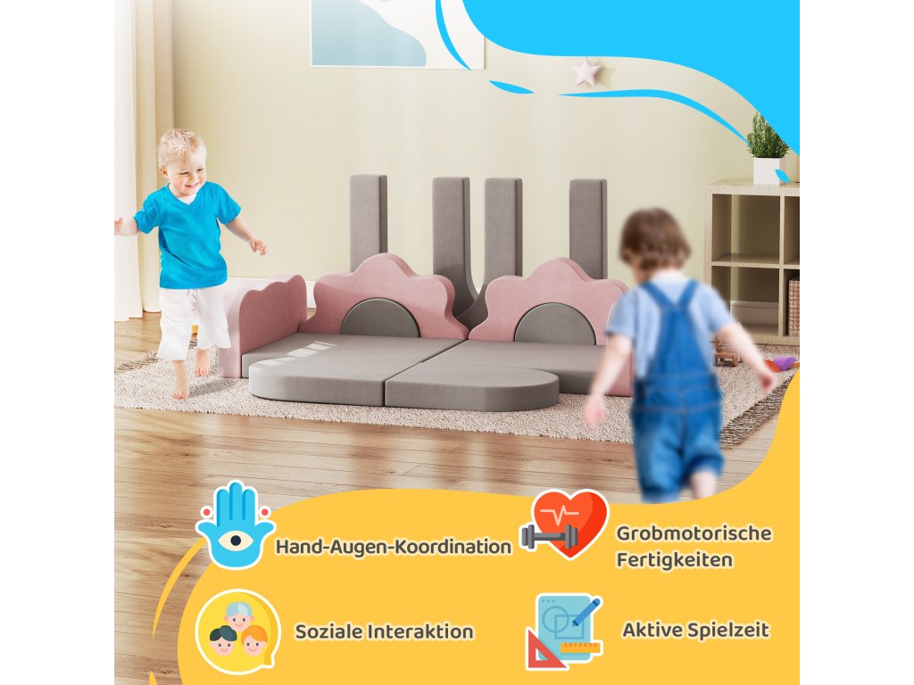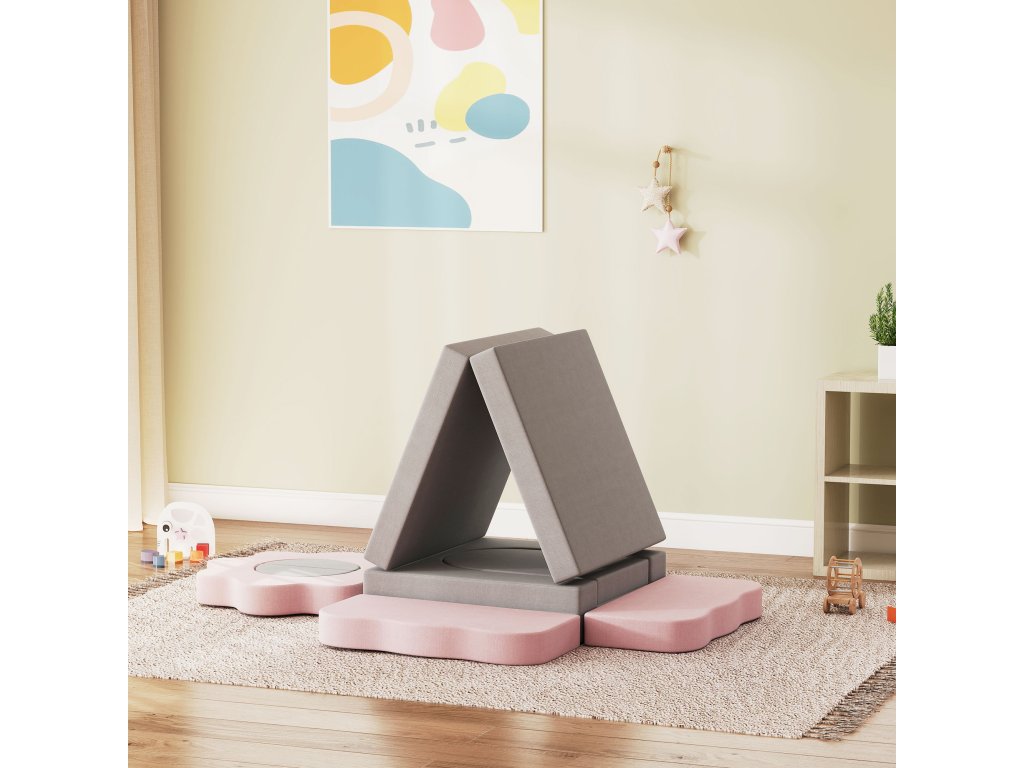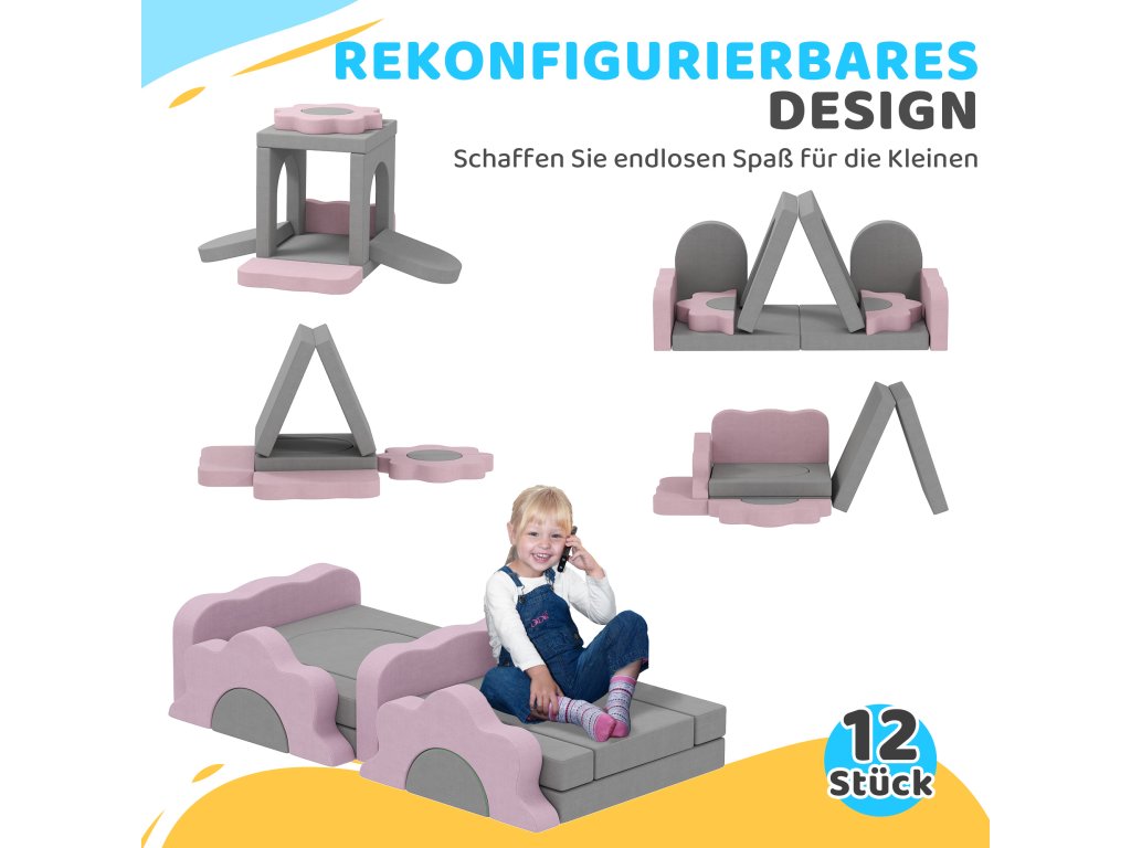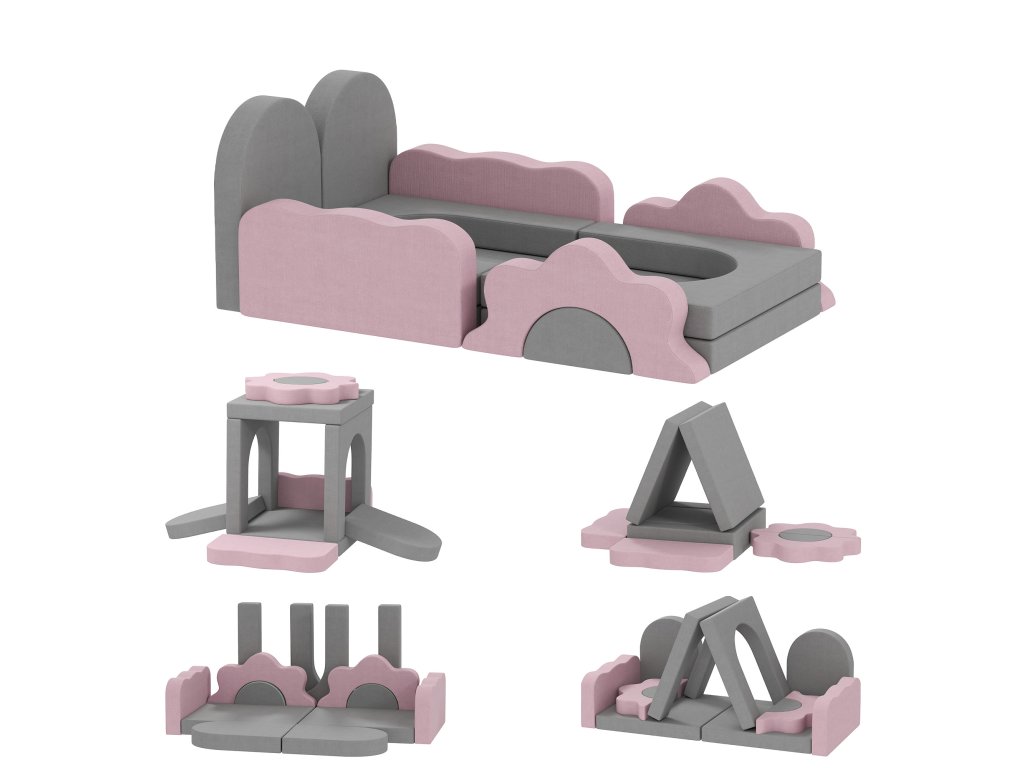 AIYAPLAY 12dílná sada pěnových bloků na lezení, stavění, procházení, vnitřní hrací podložky s manšestrovým potahem, šedá+růžová