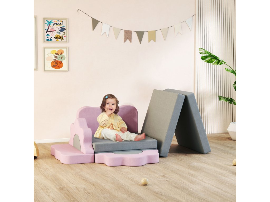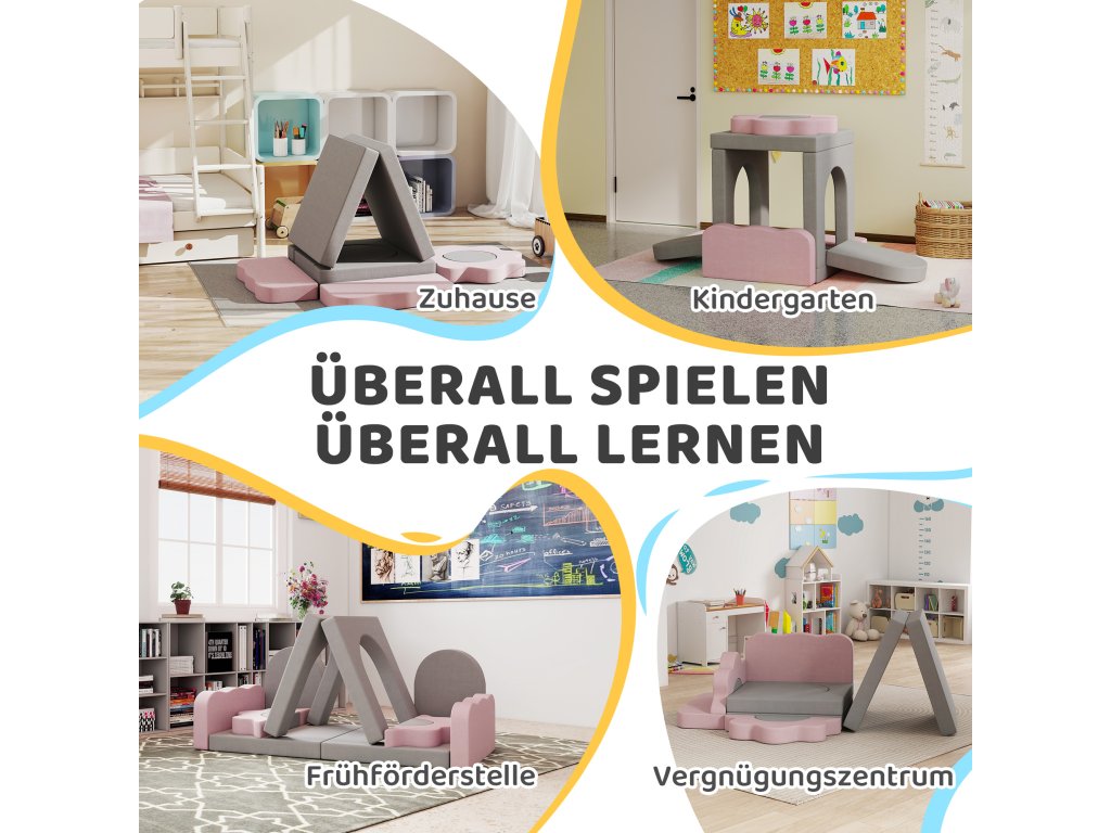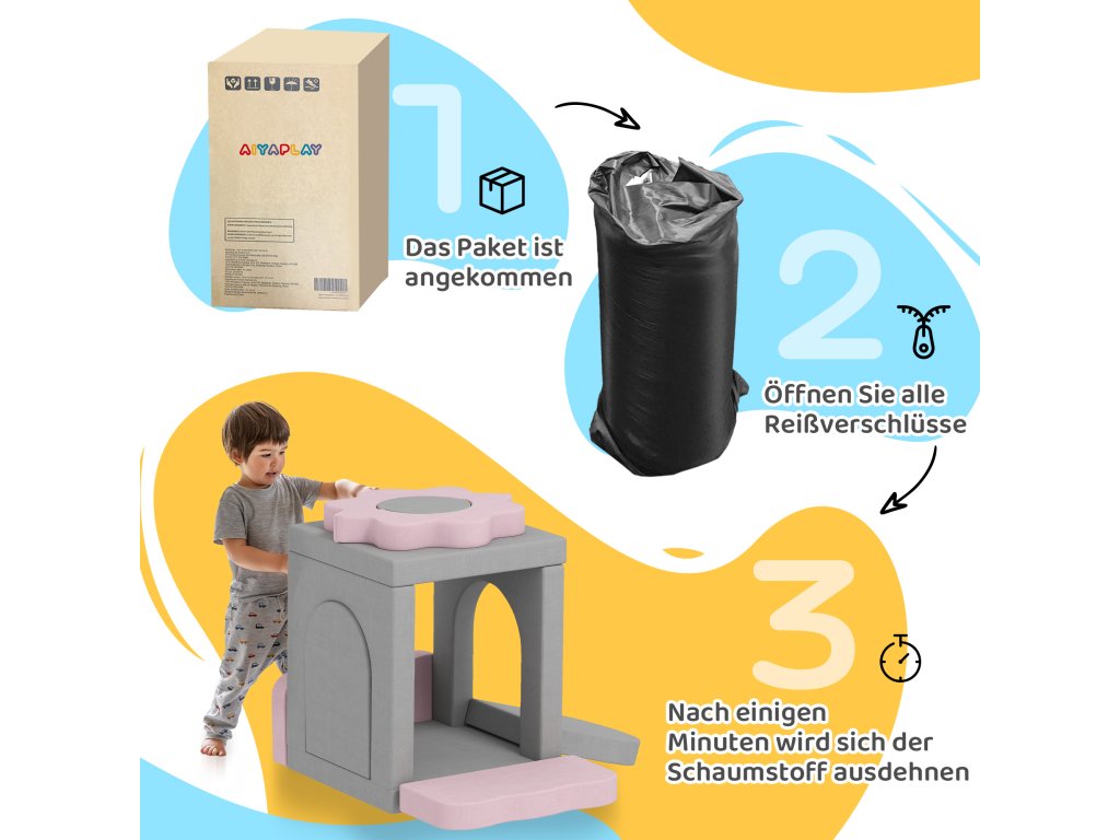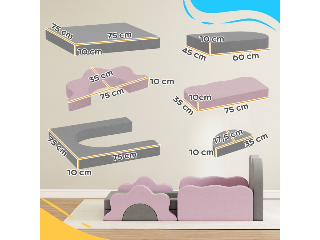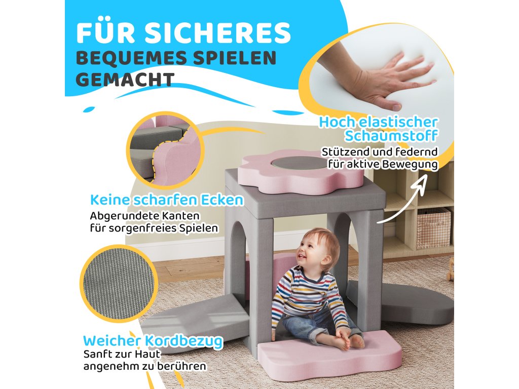 AIYAPLAY 12dílná sada pěnových bloků na lezení, stavění, procházení, vnitřní hrací podložky s manšestrovým potahem, šedá+růžová