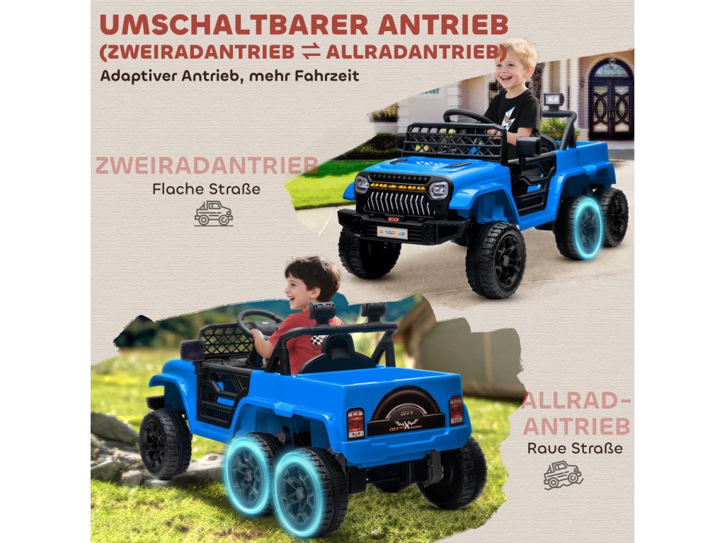 - ✔ 12V čtyřmotorové elektrické autíčko pro děti může plynule přepínat mezi pohonem 4x4 a 2x2