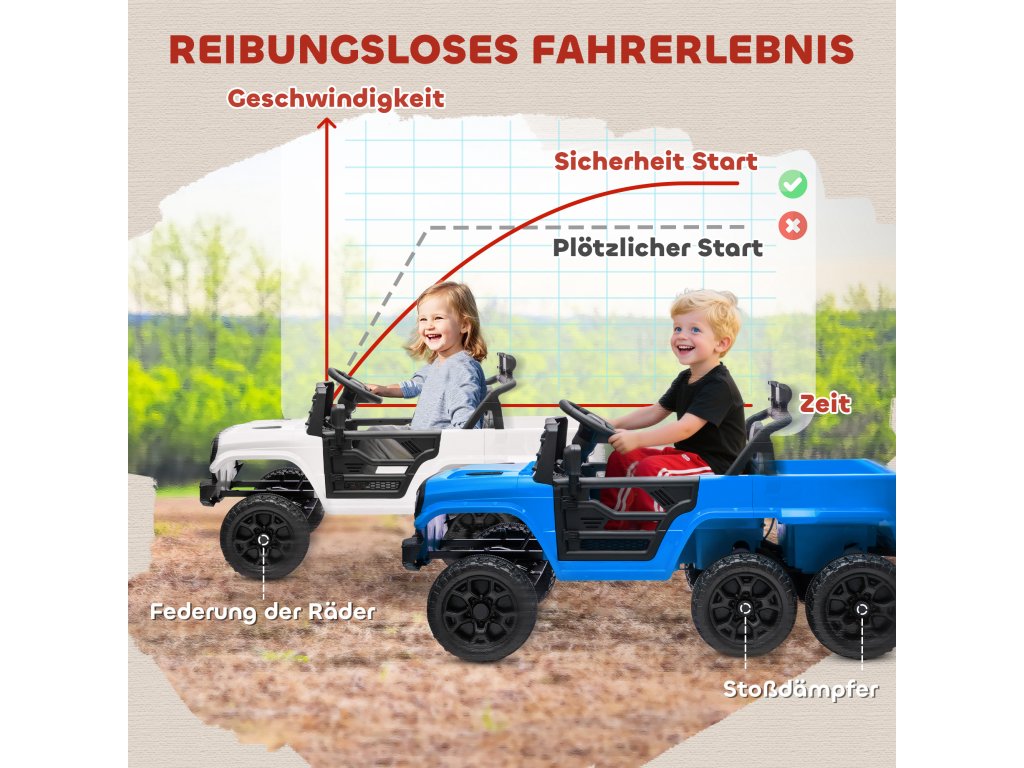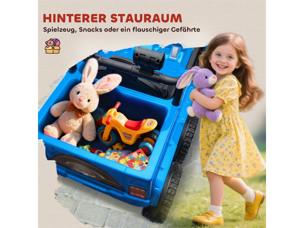 - ✔ Zadní elektrický přívěs zvyšuje úložnou kapacitu pro hračky a další předměty