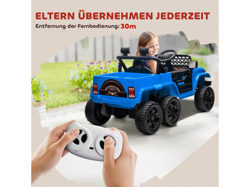 AIYAPLAY 12V dětské elektrické autíčko s přívěsem, LED světly, hudbou a klaksonem, pro děti ve věku 3-8 let, světle modré barvy