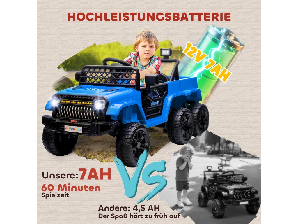 - Přepínatelné dobrodružství: Toto dětské elektrické autíčko má čtyři 12V motory a 12V 7AH baterii pro 1 hodinu jízdy a bezproblémové přepínání mezi pohonem 4x4 a 2x2, takže si děti mohou užít plynulou jízdu