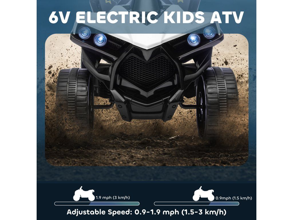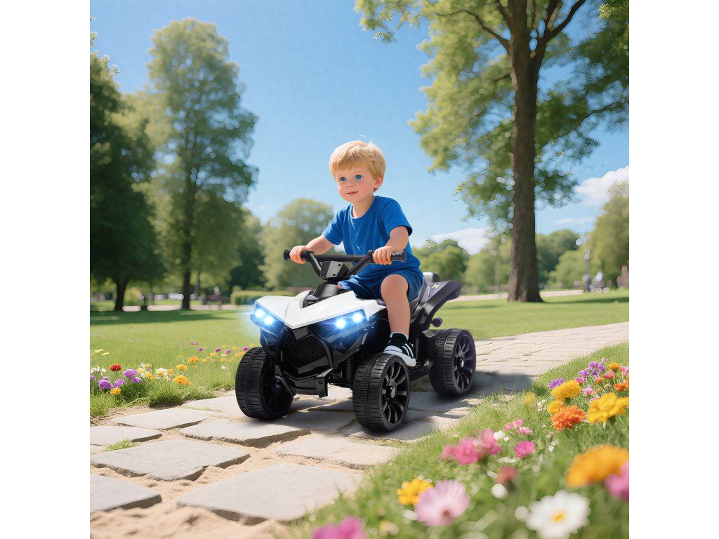 AIYAPLAY Dětská elektrická čtyřkolka 6V s funkcí jízdy vpřed a vzad, hudbou, LED světlomety, bílá