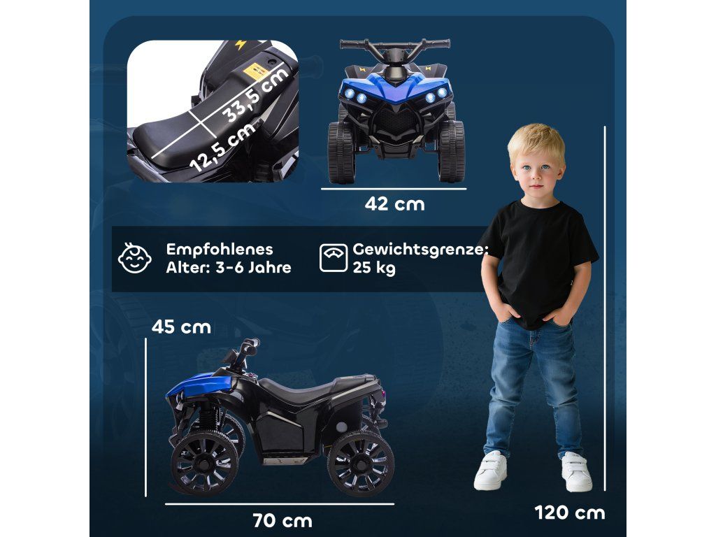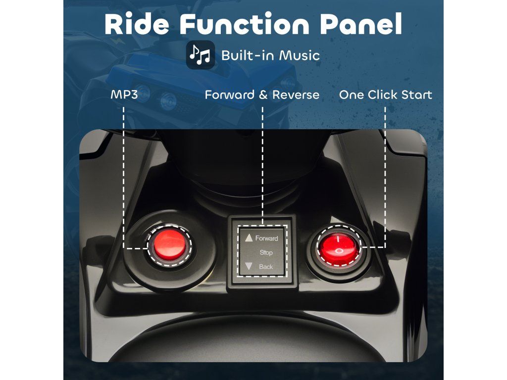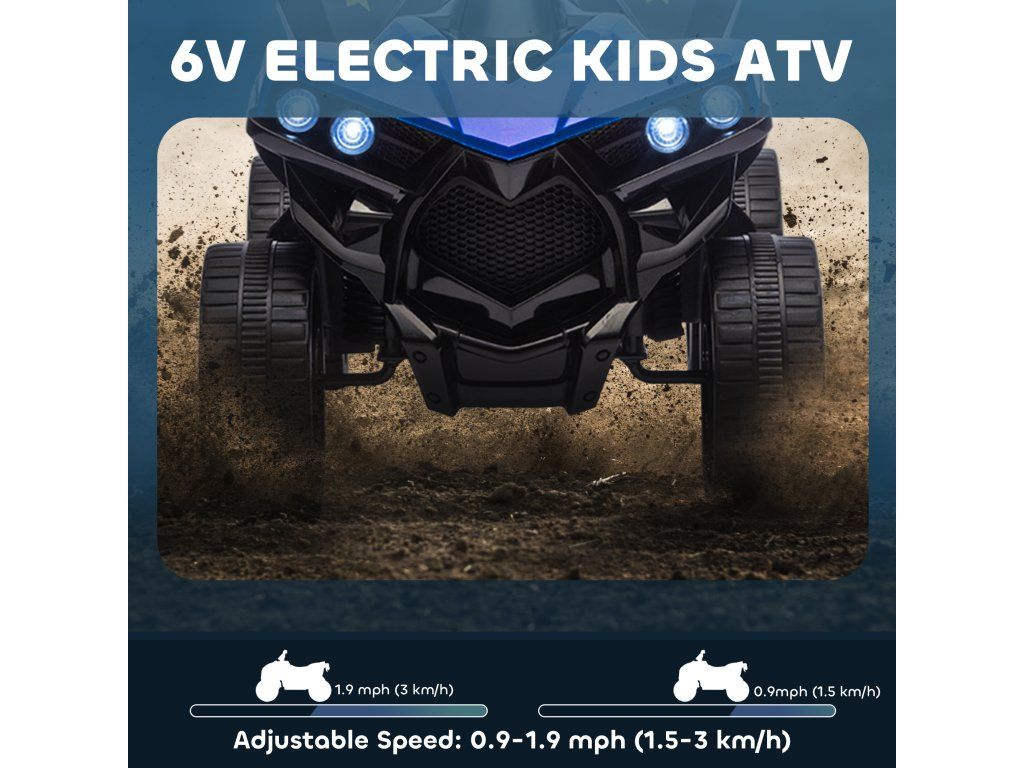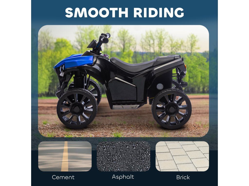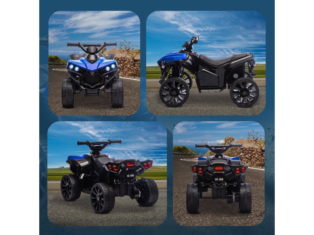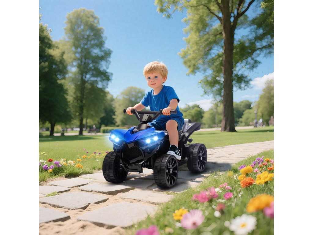 AIYAPLAY Dětská elektrická čtyřkolka 6V s funkcí jízdy vpřed a vzad, hudbou, LED světlomety modrá