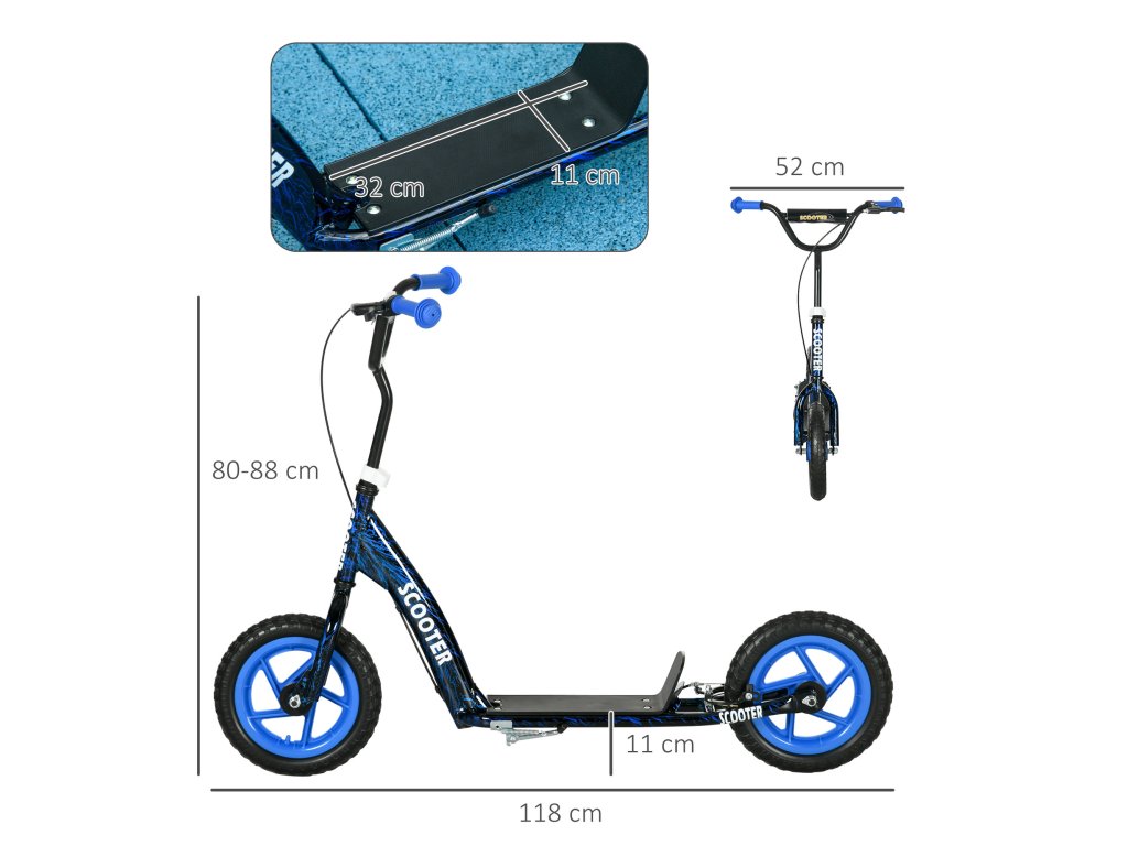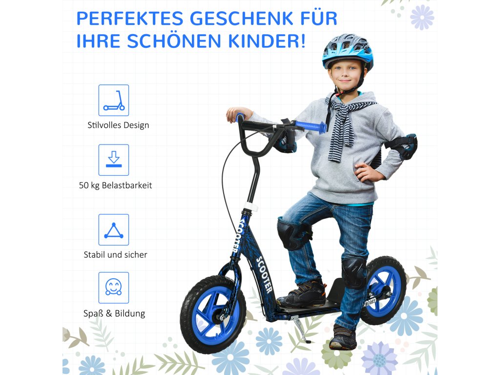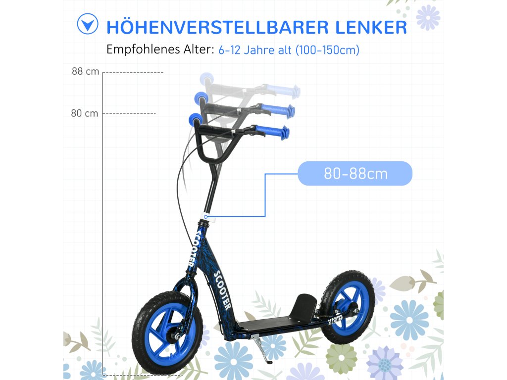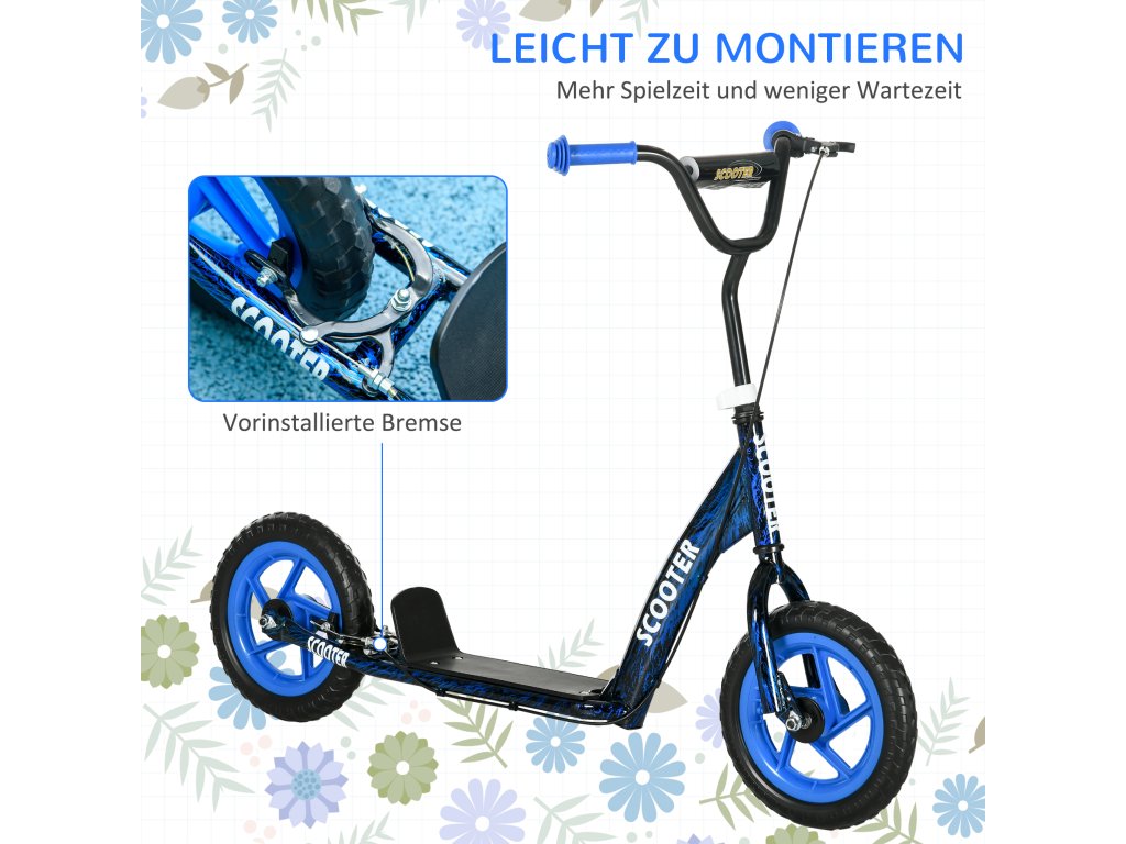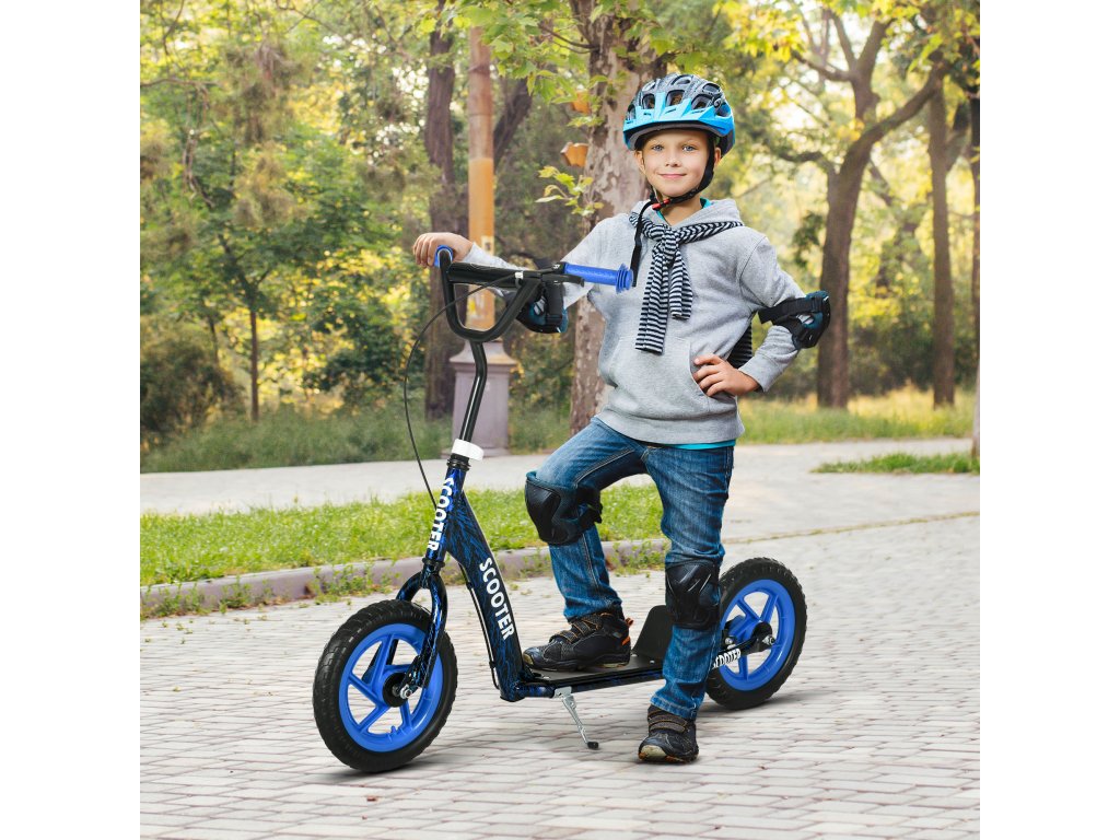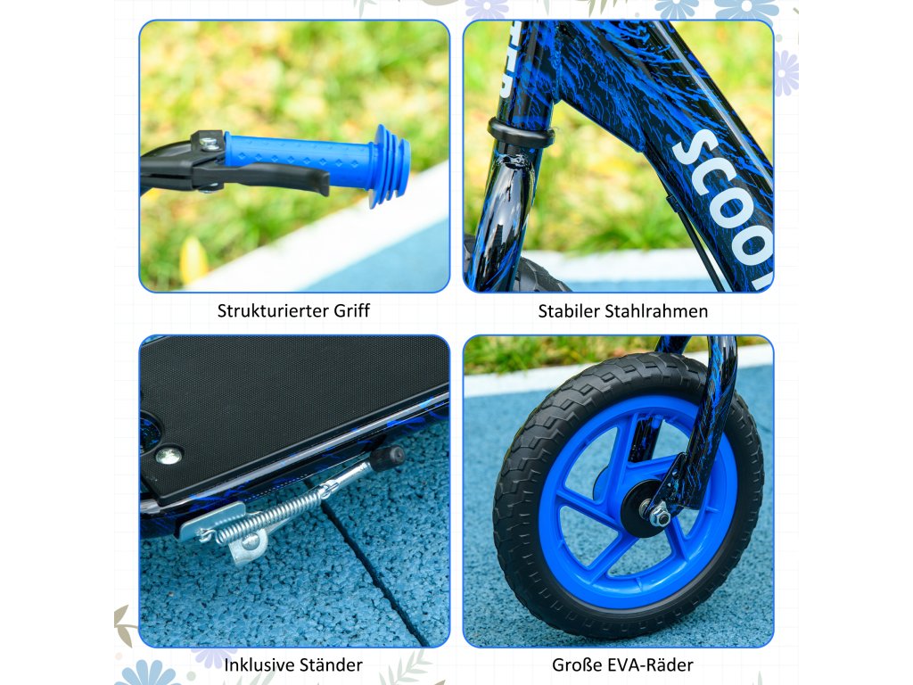 AIYAPLAY dětská koloběžka, výškově nastavitelná koloběžka pro děti, s brzda, stojánek, 2 kola, ocel, modré