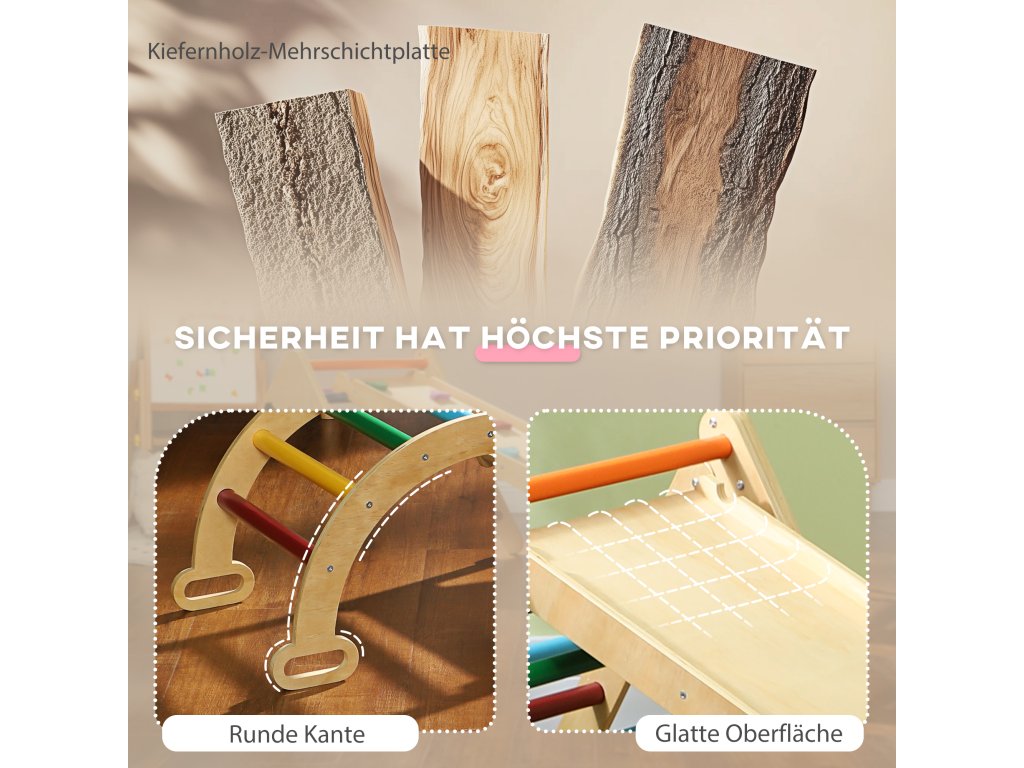 - Konstrukce bezpečná pro děti: Tato prolézačka je vyrobena z vysoce kvalitního borovicového dřeva s hladkým povrchem a zajišťuje bezpečnou hru