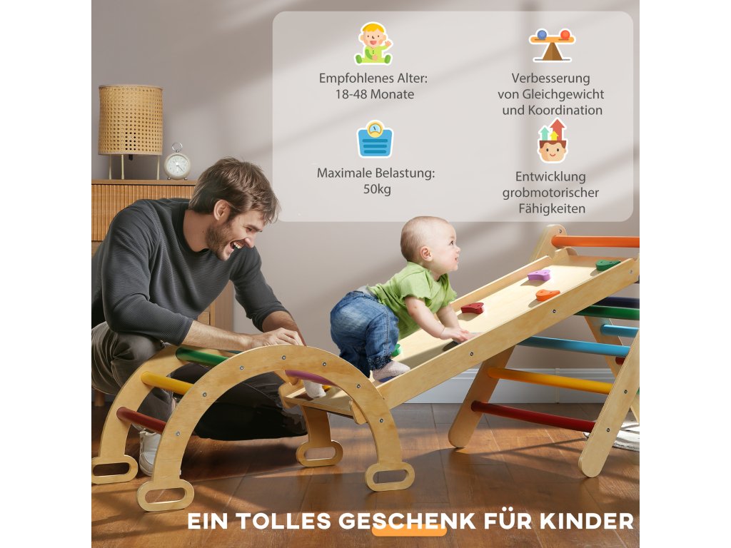 Probuďte ve svém batoleti objevitelského ducha se sadou prolézaček AIYAPLAY! Tato multifunkční Montessori prolézací sada 5 v 1 nabízí prolézačky ve tvaru trojúhelníku a oblouku, houpačku, houpadlo, prolézací rampu a skluzavku. Tato sada prolézaček je vyrobena z jemného masivního dřeva a nabízí ideální příležitost k lezení v interiéru, která podpoří rozvoj a sebedůvěru vašeho dítěte!