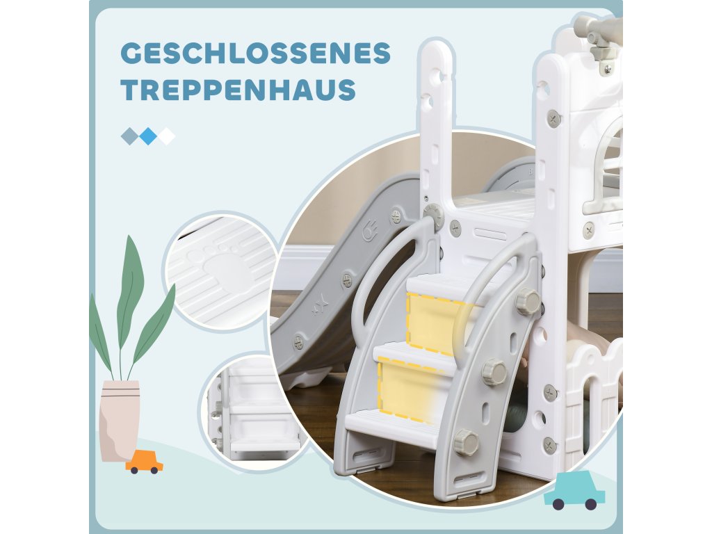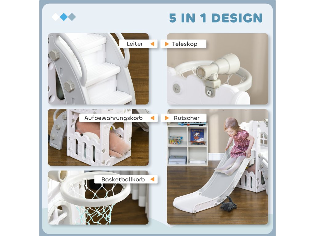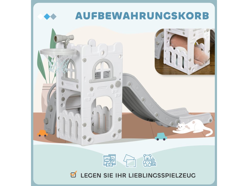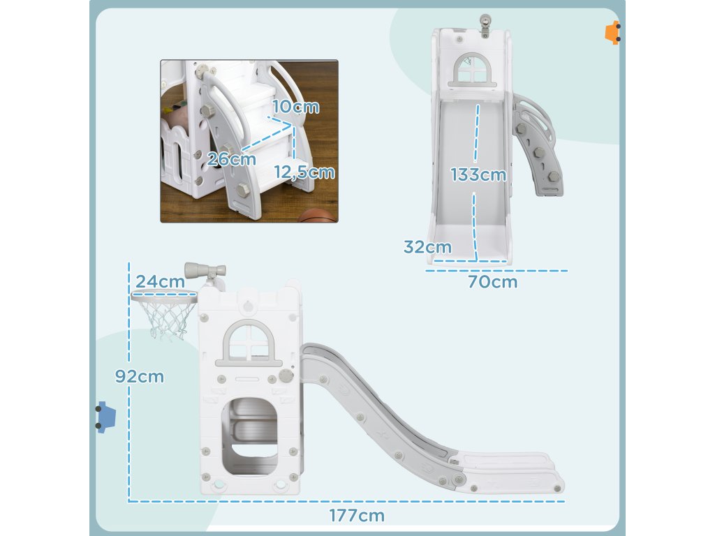 AIYAPLAY dětská skluzavka, 5 v 1, skluzavka pro batolata s basketbalový koš, teleskopický lezecká konstrukce šedé 70 x 177 x 92 cm