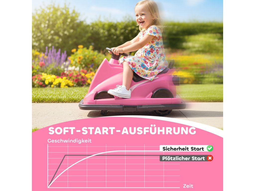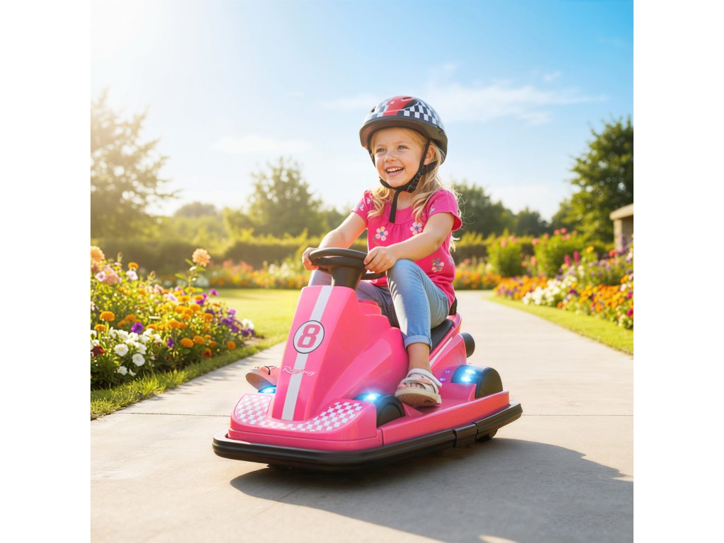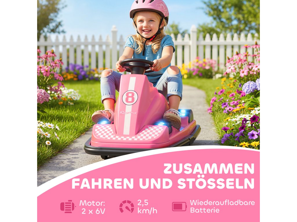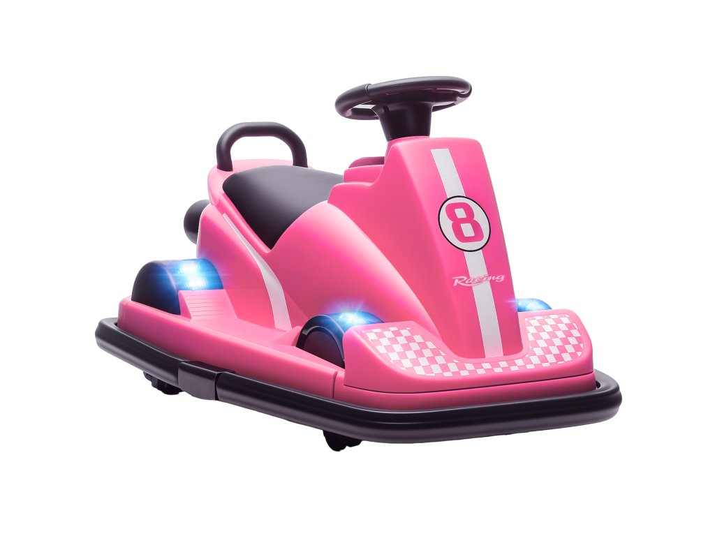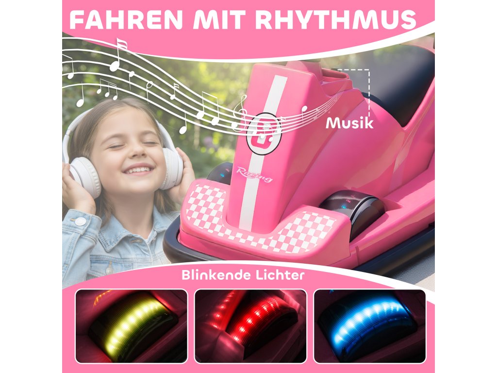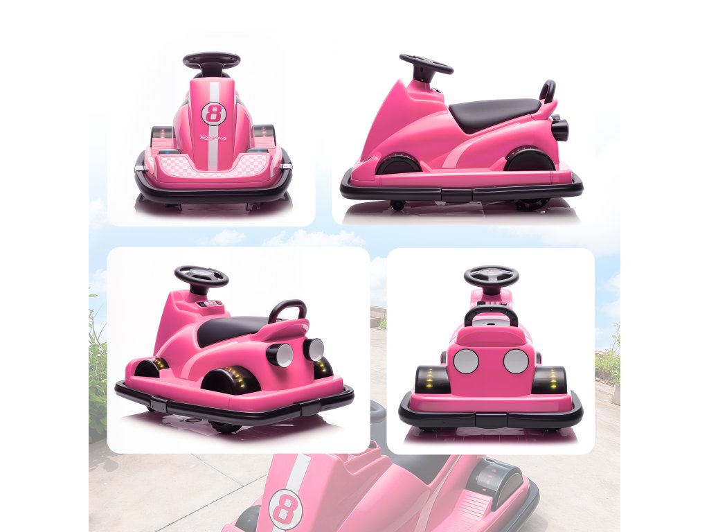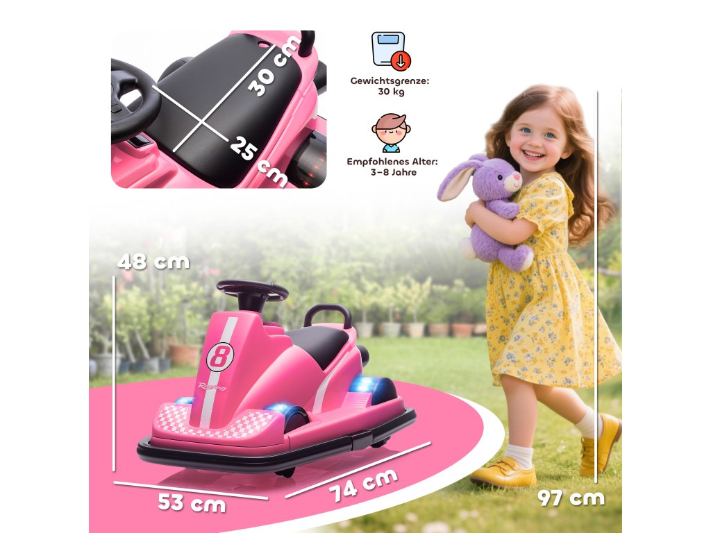AIYAPLAY dětské autíčko, dětské autíčko pro děti, otočné nebo 360°, volán, LED světlo, vysoké rádio, 3-8 let, růžové
