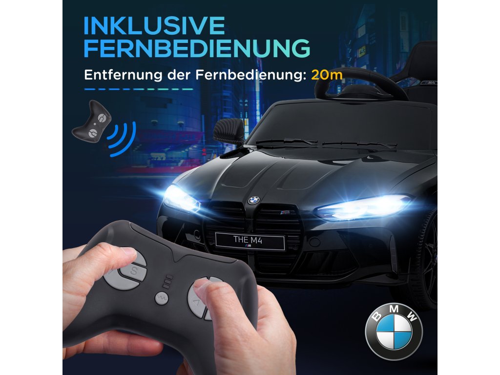 AIYAPLAY dětské elektrické autíčko BMW M4, zvuk a světlo, 3-5 km/h, včetně dálkového ovládání, pro 3-5 let, černé