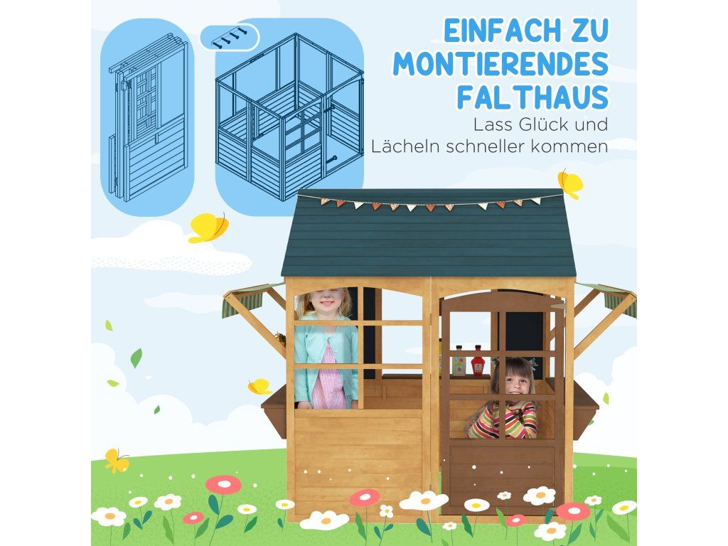 AIYAPLAY Dětský domeček na hraní z jedlového dřeva, skládací domeček s okny a dveřmi, pro děti ve věku 3-8 let, hnědá+modrá barva