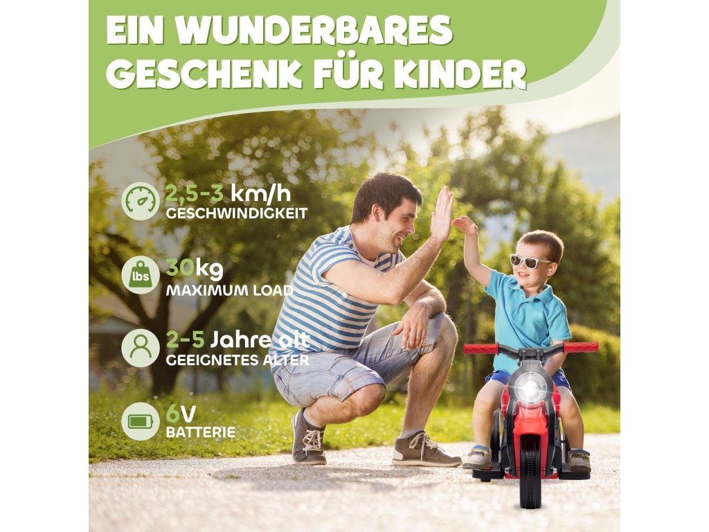 AIYAPLAY dětský elektrický motocykl, 6V dětský motorrad s music, bubliny 2, 5-3 km/h, za 2-5 let dětský