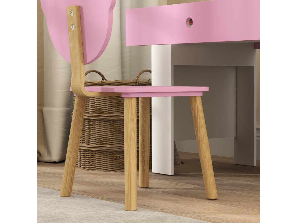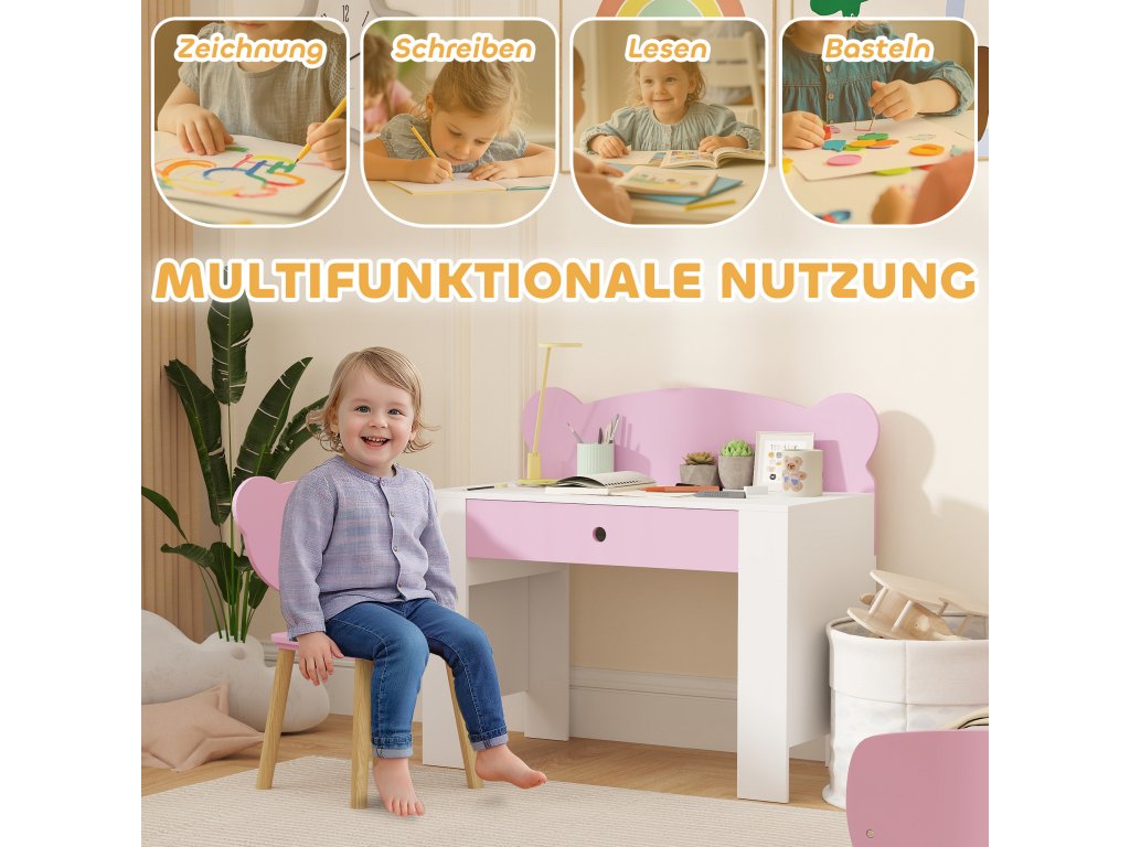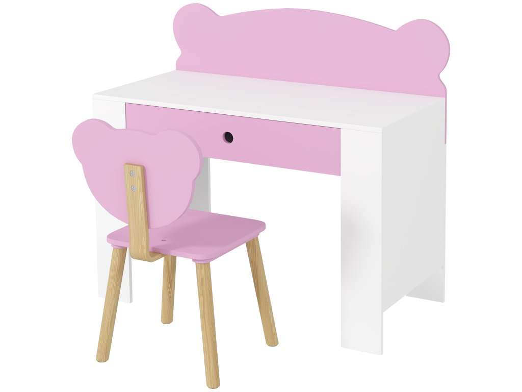 AIYAPLAY Dětský psací stůl, pracovní stůl a židle ve tvaru medvídka, zásuvka, na psaní a tvoření, 3-8 let, růžový