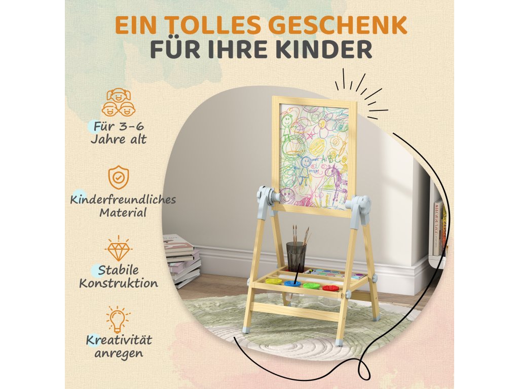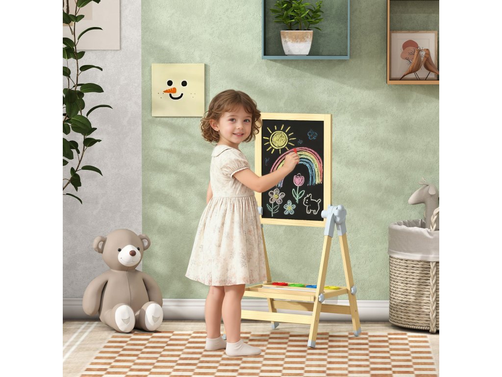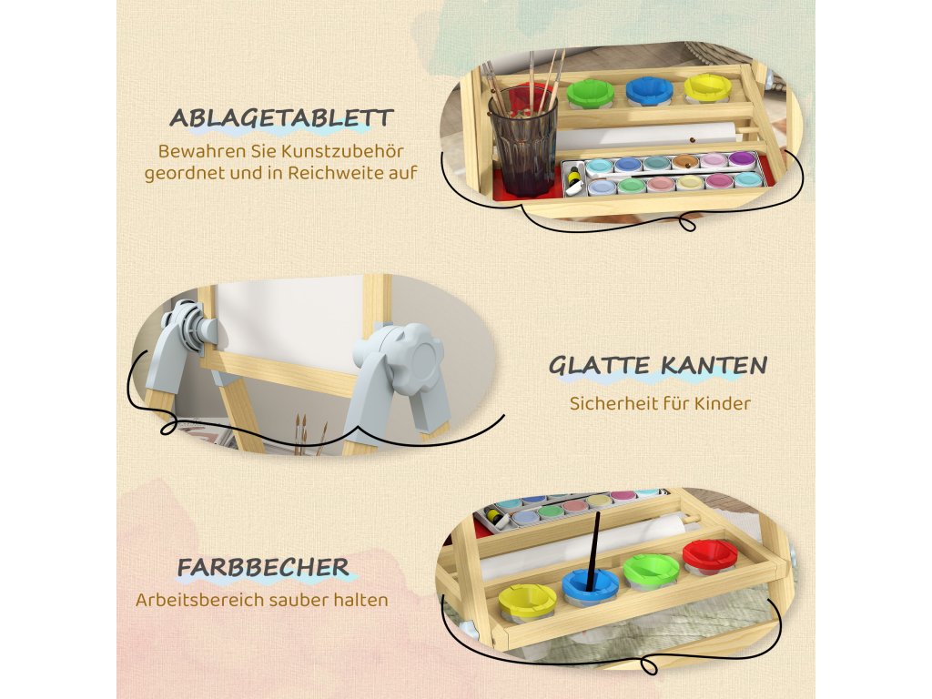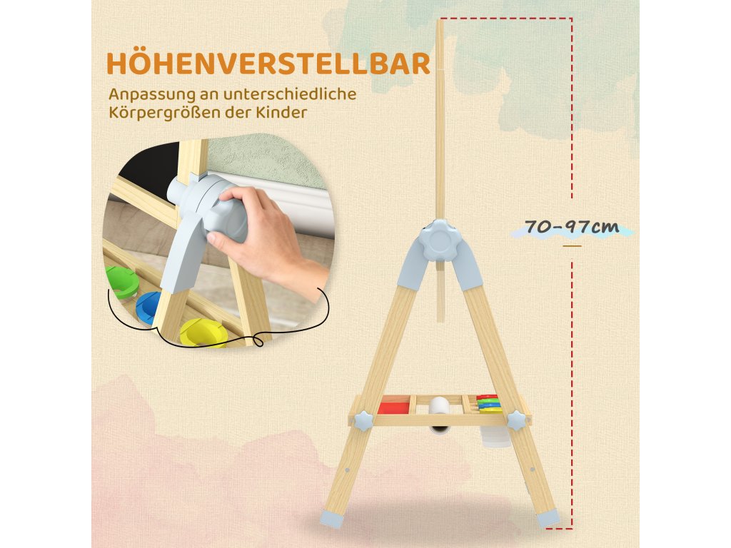 AIYAPLAY dětský stojan ze dřeva, oboustranná bílá tabule a tabule výškově nastavitelná tabule s role papíru, police, přírodní