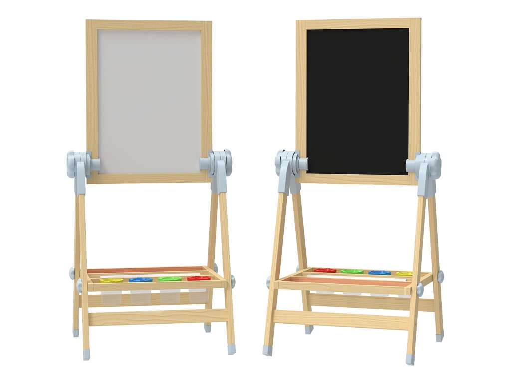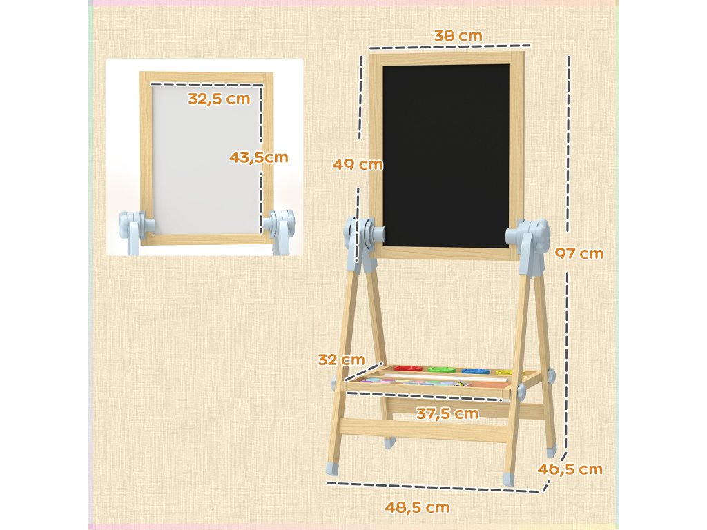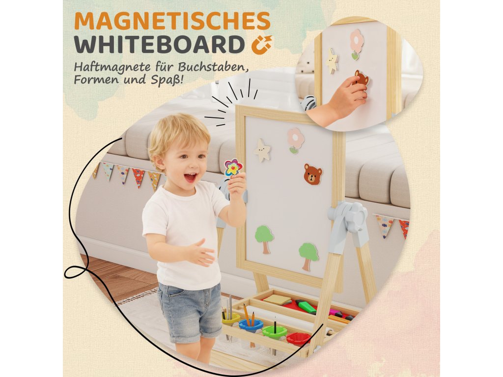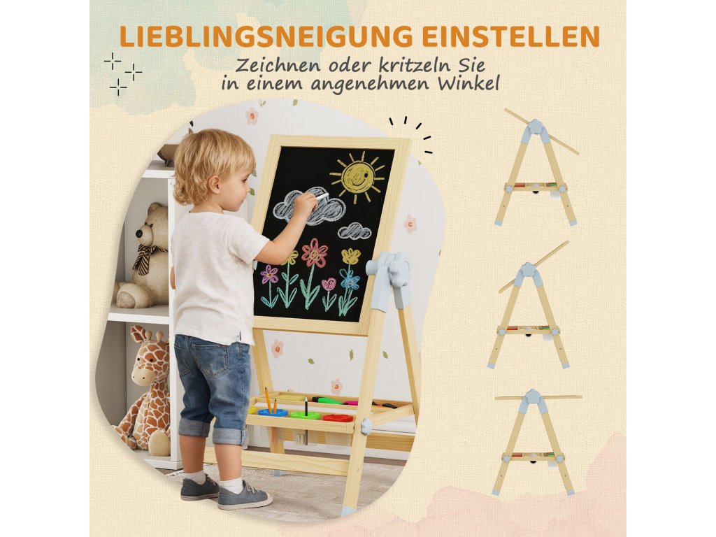 AIYAPLAY dětský stojan ze dřeva, oboustranná bílá tabule a tabule výškově nastavitelná tabule s role papíru, police, přírodní