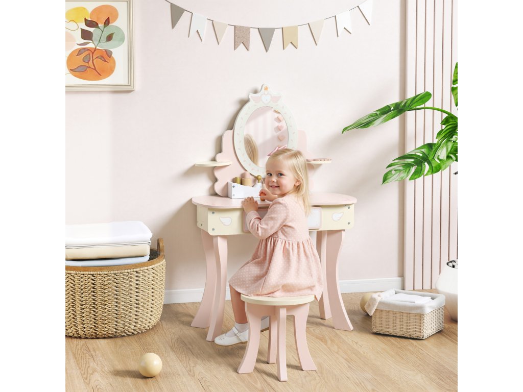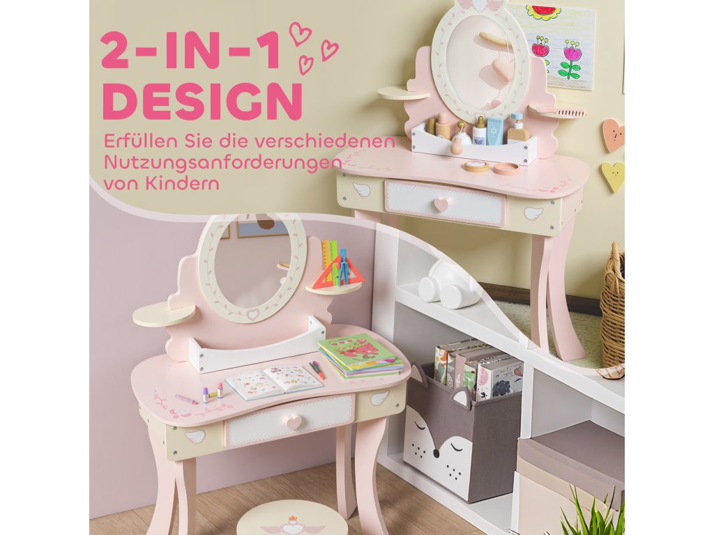 - 2-v1 design: Snadno proměnit dětský toaletní stolek v psací stůl odstraněním zrcadla, ideální pro umělecké malování a tvoření nebo společné čtení