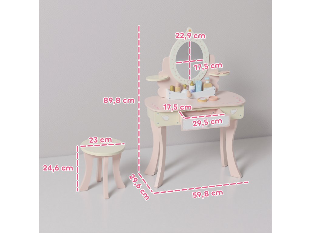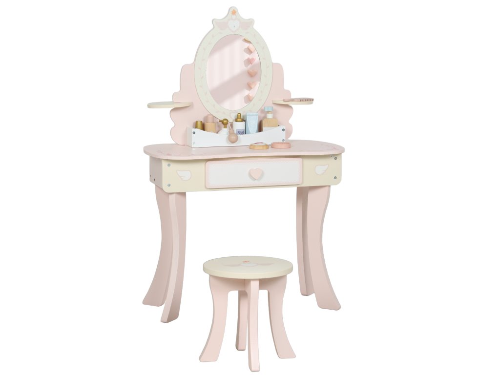 - Krásný design: Tento nádherný růžový toaletní stolek s láskyplnými motivy srdce a křídel, stejně jako doplňky na 7 her, podporuje nápaditou hru a výjimečné chvíle
