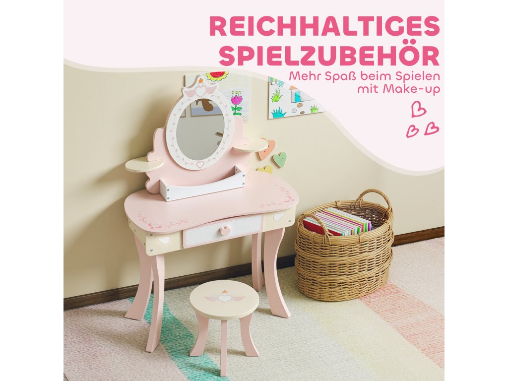 AIYAPLAY dětský toaletní stolek, židle, zásuvka, odnímatelný zrcadlo, dětský psací stůl se 7 doplňky, provedení 2 v 1, MDF, růžové