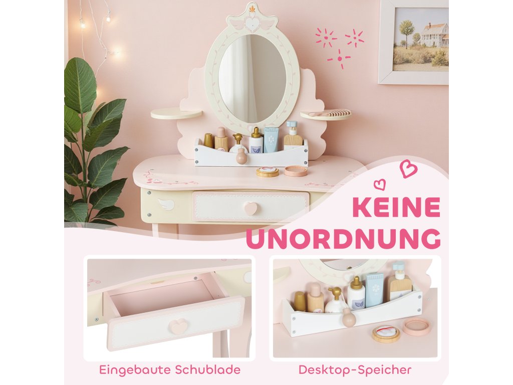 - ✔ Roztomilý design srdcového křídla a 7 doplňků toaletního stolku povzbuzují děti k nápadité hře celé hodiny