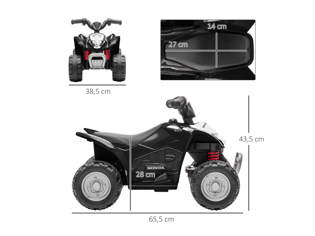 Odolná konstrukce: Tato elektrická čtyřkolka je vyrobena z kovu a robustního plastu a je vhodná pro děti ve věku 1,5 až 3 roky a s hmotností do 25 kg.