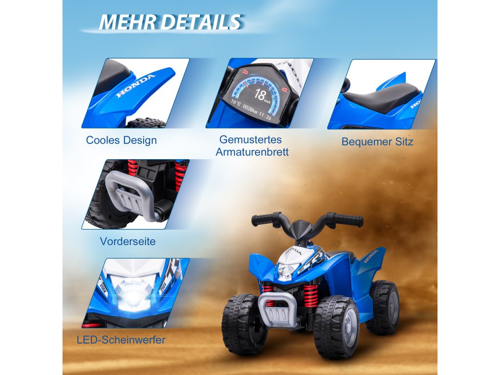 Realistický zážitek z jízdy: Tato dětská čtyřkolka je vybavena LED světlomety, klaksonem a pedály a nabízí vašemu dítěti autentický zážitek z jízdy, který mu rozzáří oči.