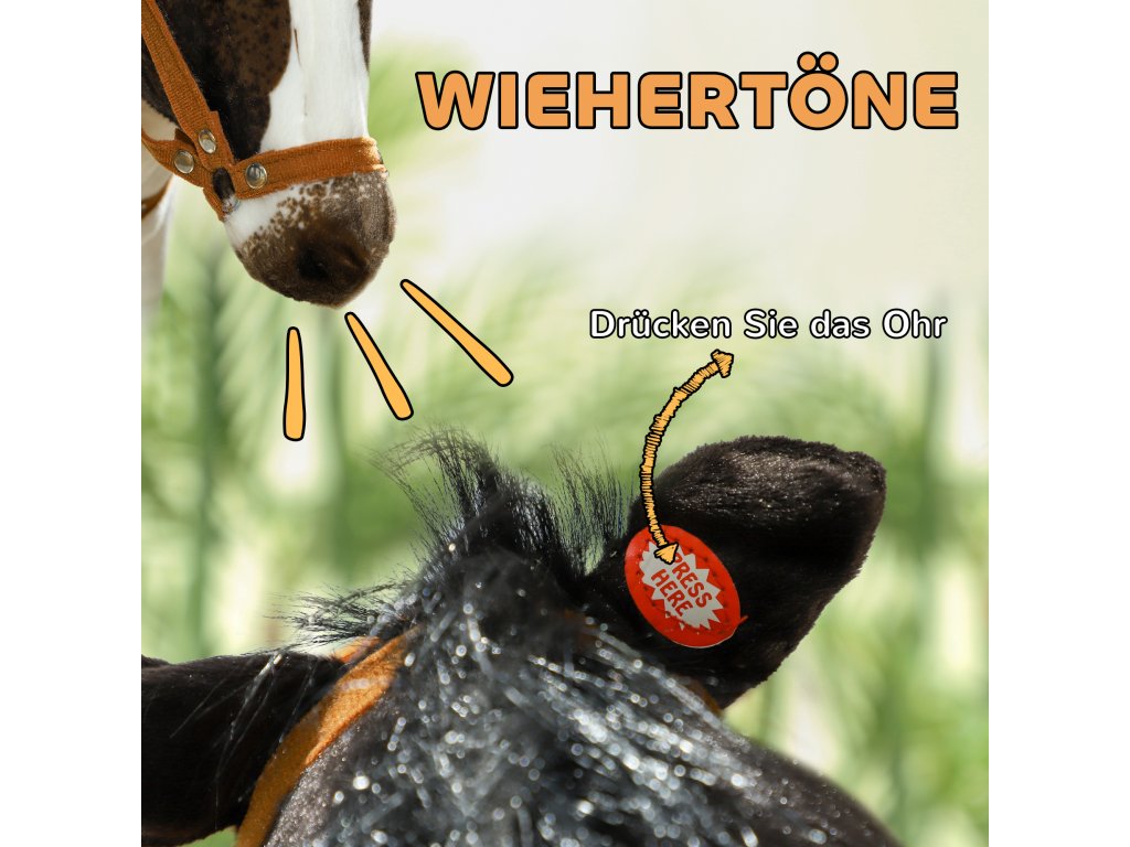 - Interaktivní funkce: Děti budou okamžitě nadšené z řehtání tohoto jezdeckého koně, které se spouští pomocí 2 x 1,5V baterií AA, které jsou již součástí balení, a které je povzbudí ke hře.
