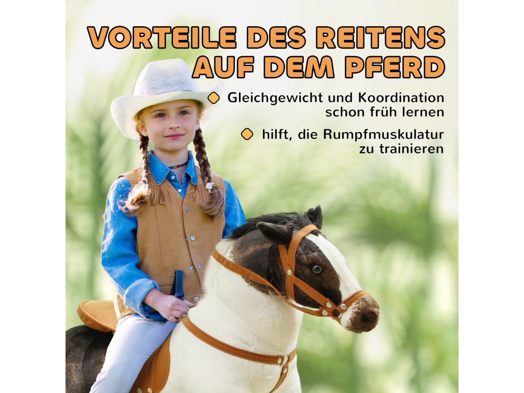 - Rozvoj tělesných svalů: Tento jezdecký kůň účinně podporuje rozvoj tělesných svalů a koordinace malých jezdců, a tím podporuje fyzický rozvoj dětí ve věku od 3 do 8 let.