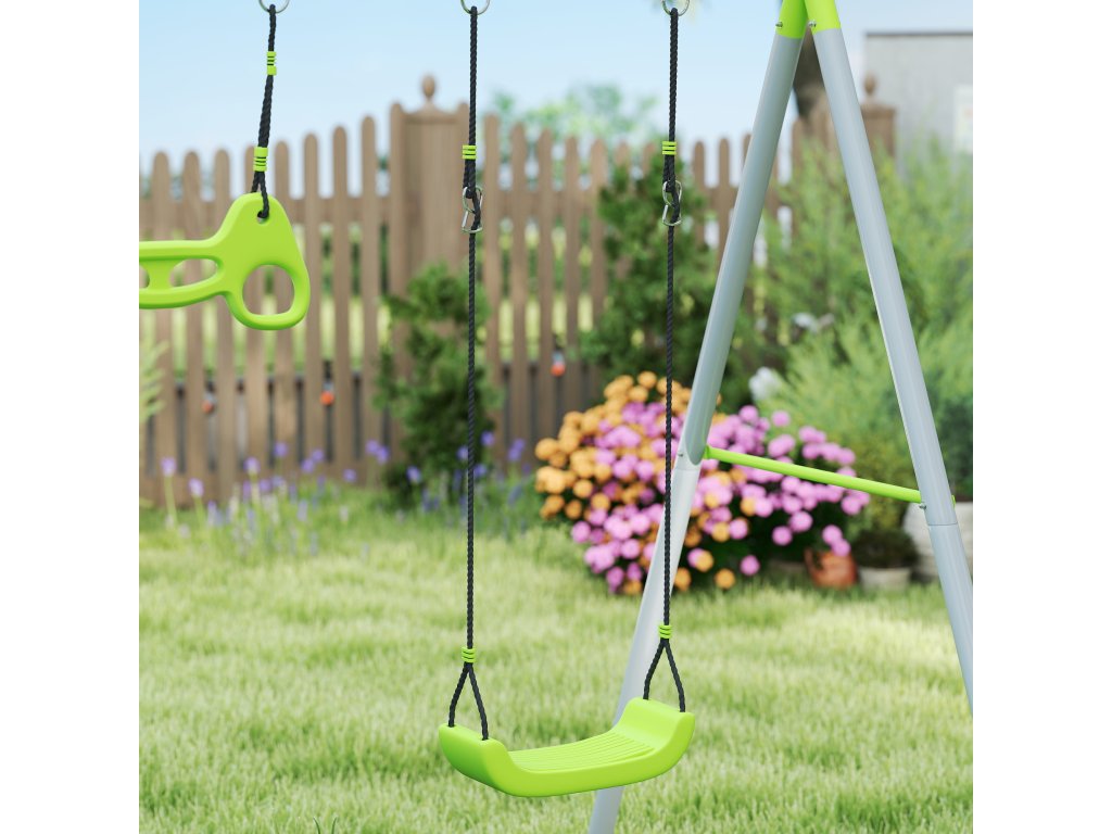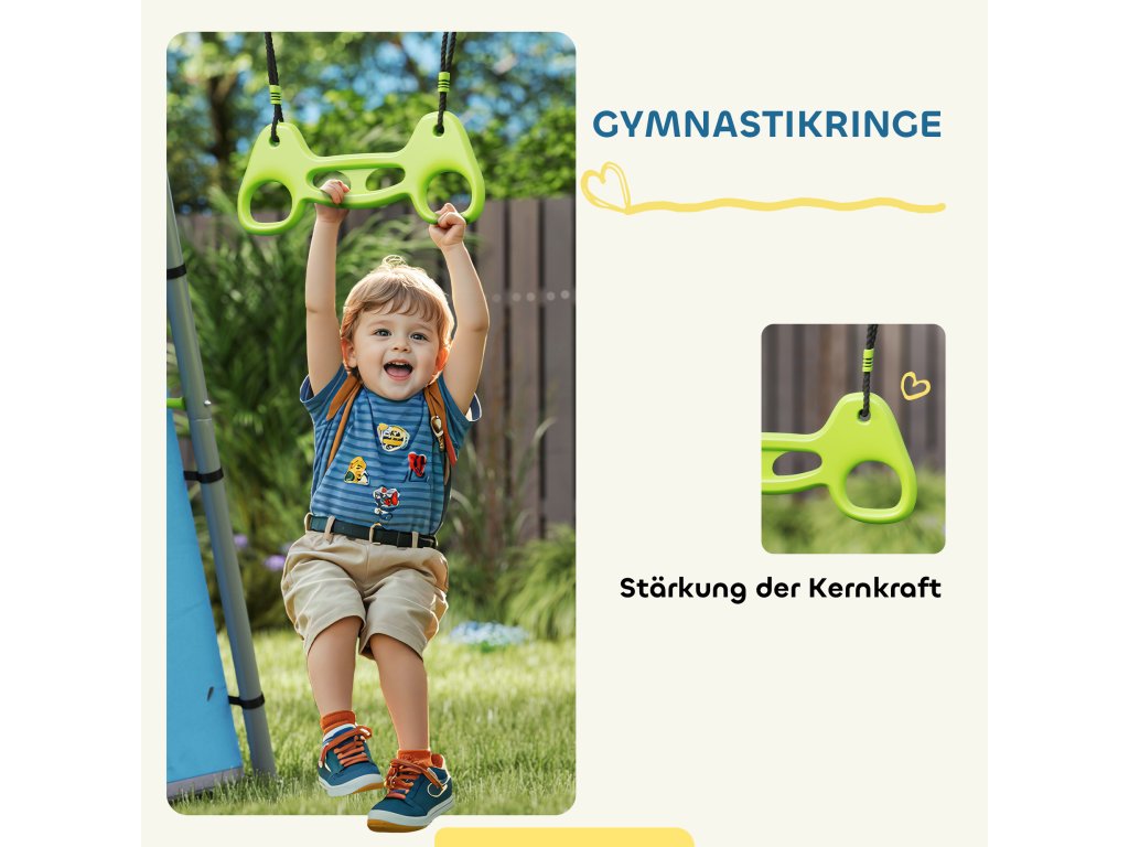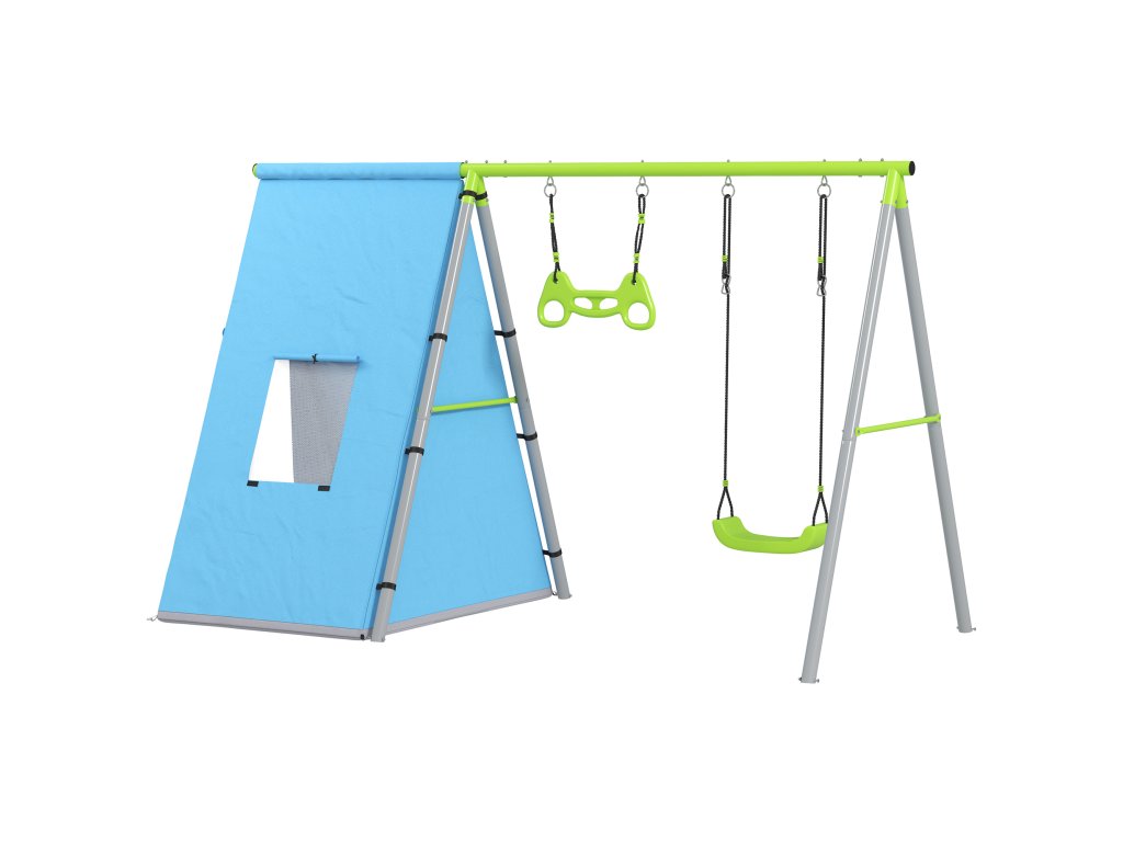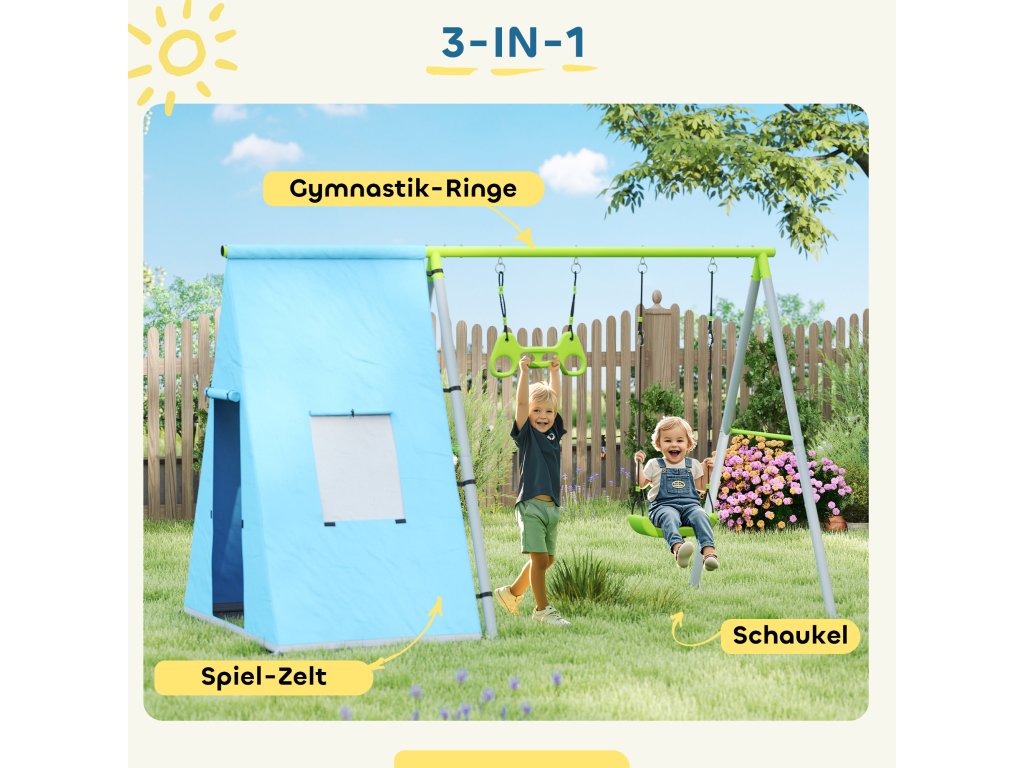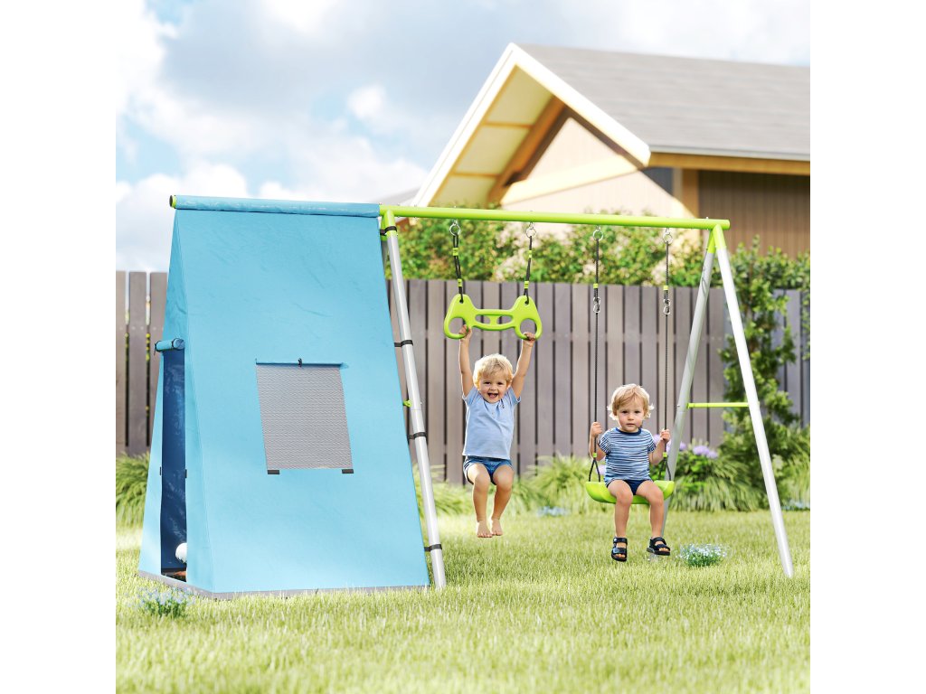 AIYAPLAY houpačka 3 v 1, hrací stan, houpačka, gymnastické kruhy, kov, plast, zelená barva