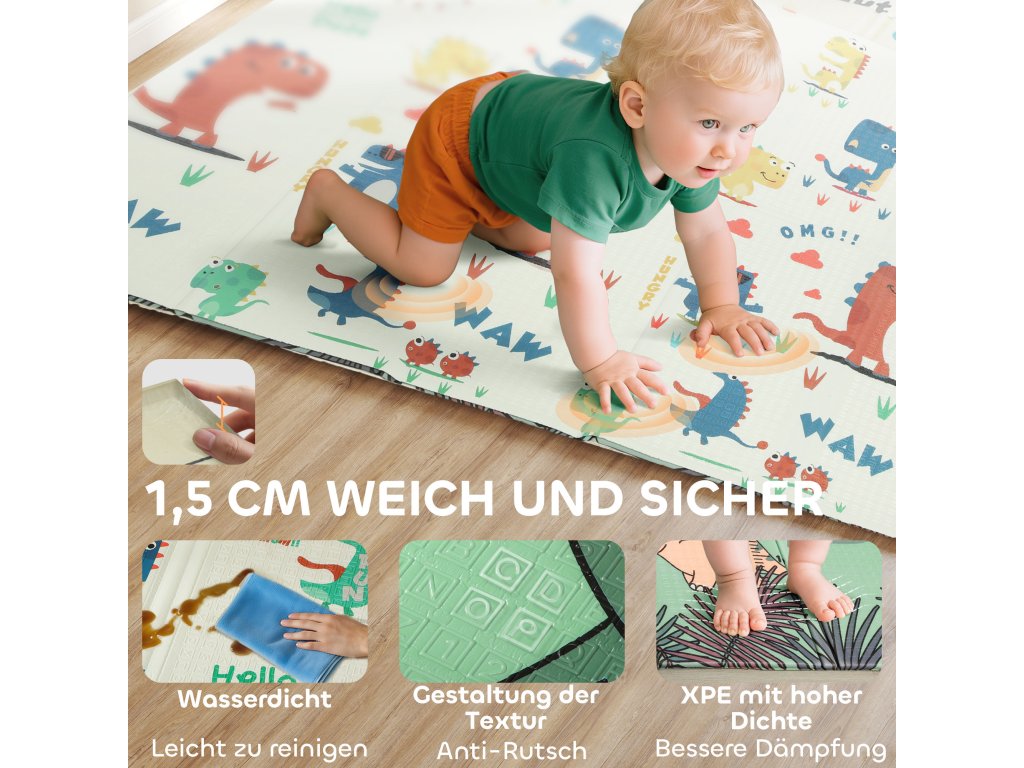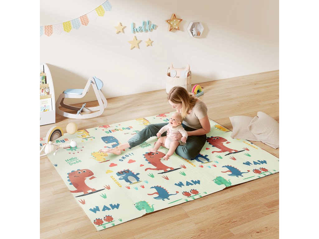 AIYAPLAY hrací podložka, hrací podložka pro miminka 196 x 176 x 1, 5 cm skládací oboustranná podložka na lezení vícebarevná