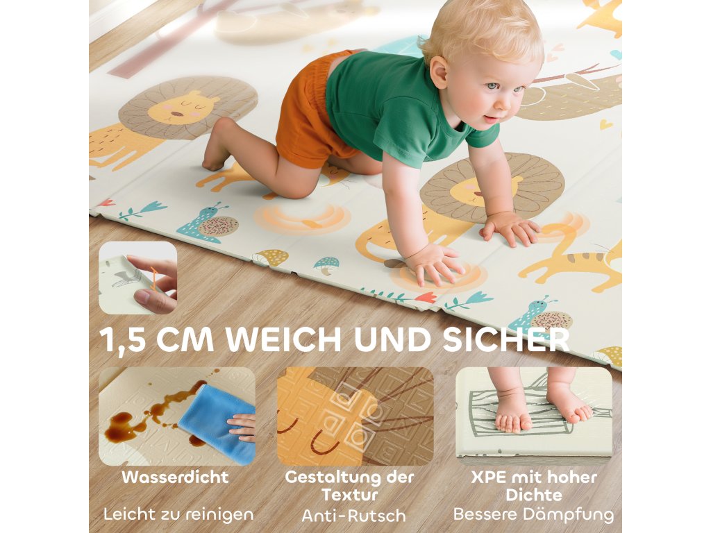 AIYAPLAY hrací podložka, hrací podložka pro miminka 196 x 176 x 1, 5 cm skládací oboustranná podložka na lezení vícebarevná