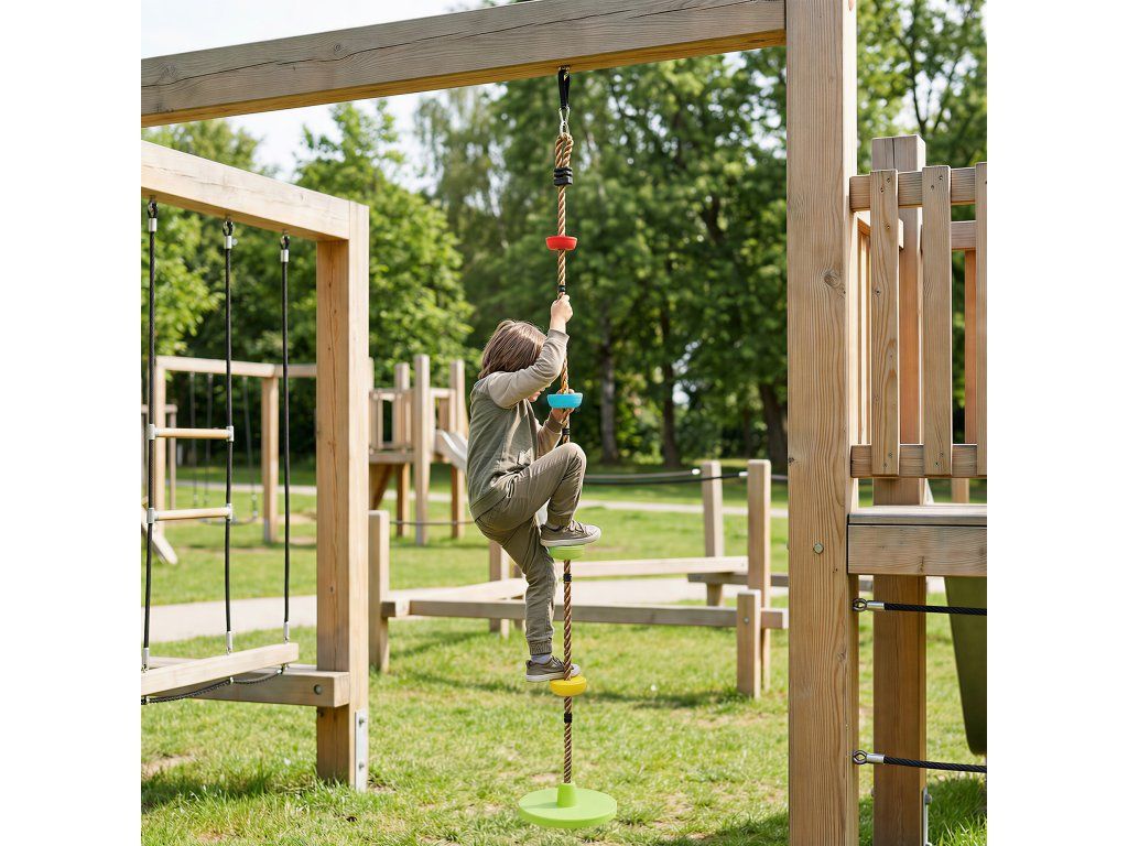 Bezpečné a zábavné: Tato sada dětských lezeckých lan s protiskluzovým diskem a přilnavým PE lanem nabízí stabilitu a bezpečnost a umožňuje dětem bezpečně si užívat vzrušující lezení a houpání.