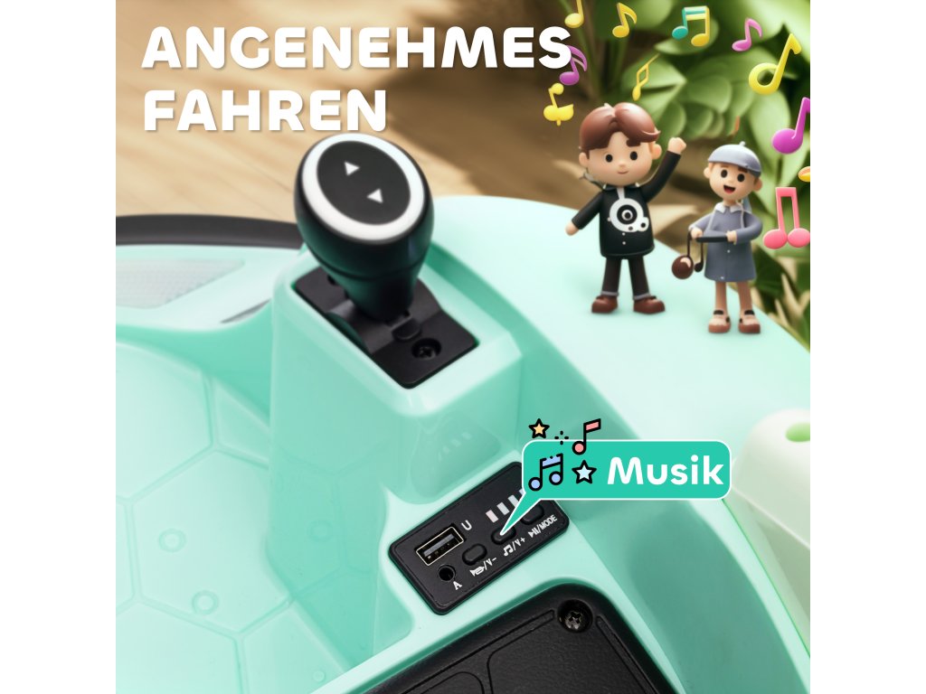 AIYAPLAY odrážecí koloběžka, otáčení o 360°, rychlost 2 km/h, bezpečnostní pás, LED světla, hudba a klakson, zelená barva