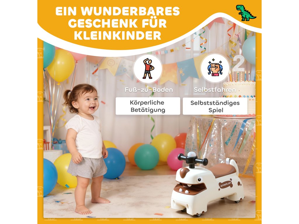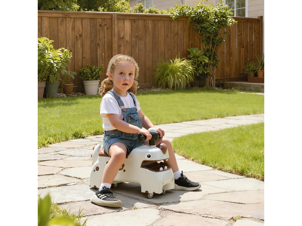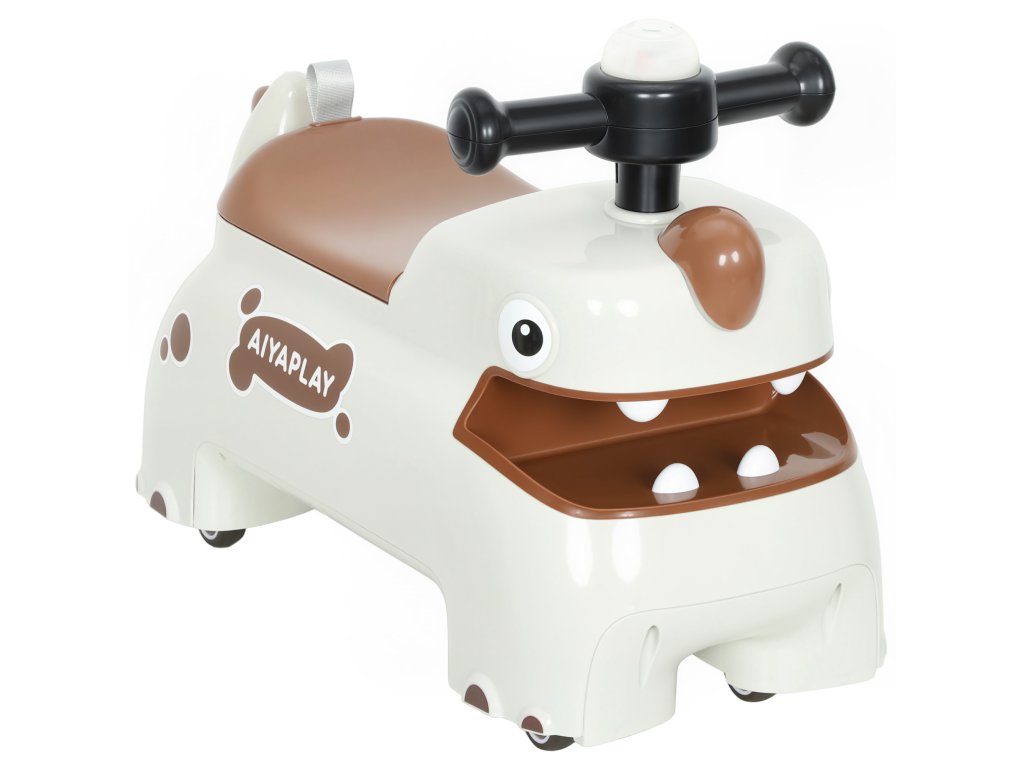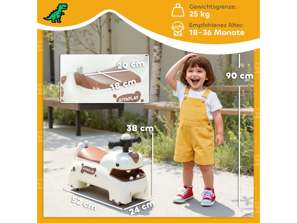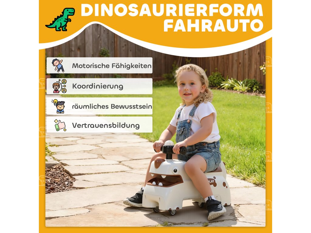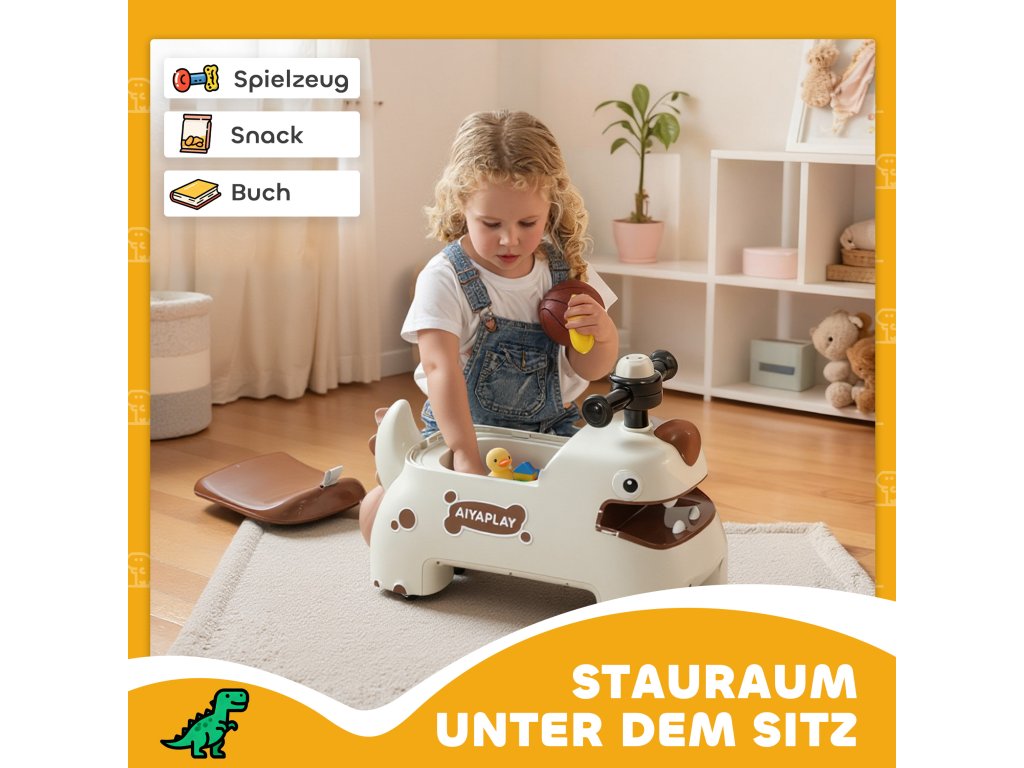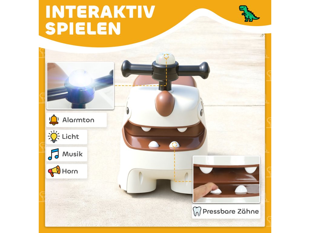 AIYAPLAY Odrážedlo, dino design, volant, světla, zvuky, 4 kola, krémově bílá + hnědá