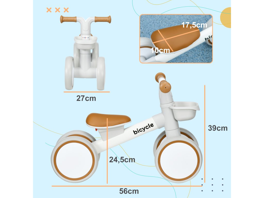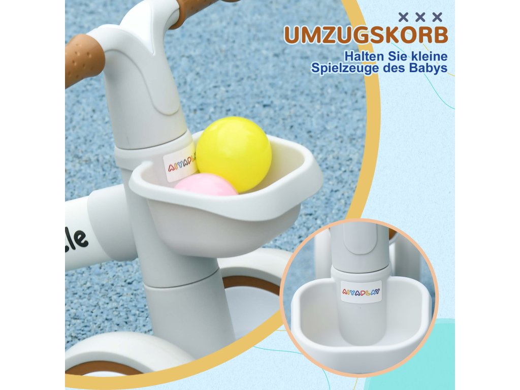 AIYAPLAY odrážedlo, nastavitelná sedačka, tichá kola, do 20 kg, hnědé/bílé, pro 1–3 let