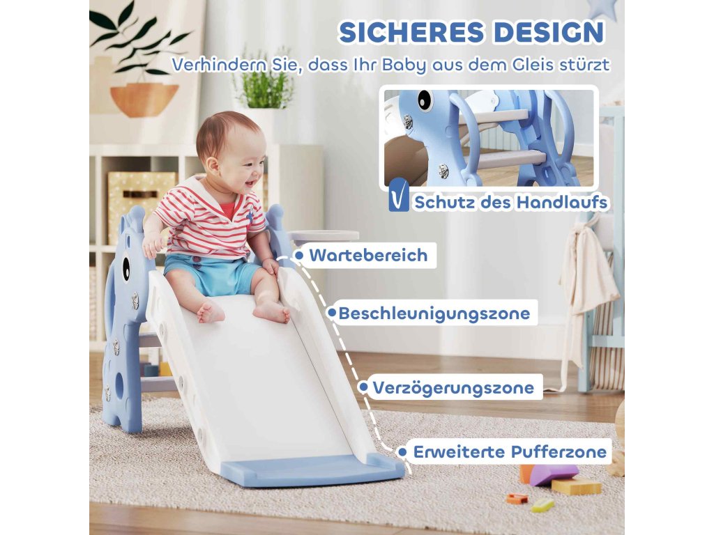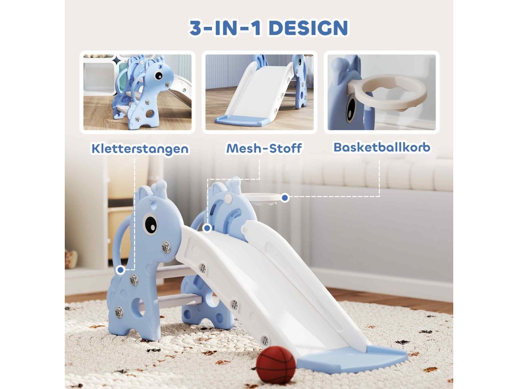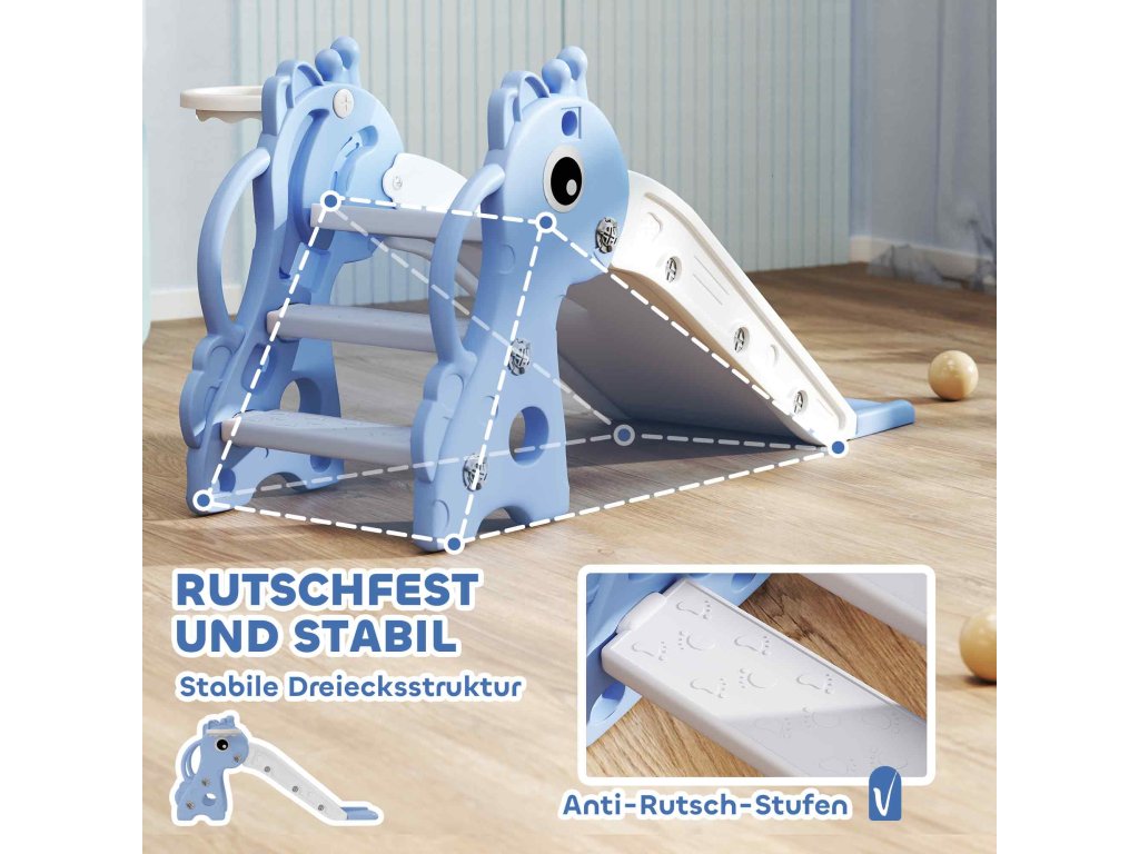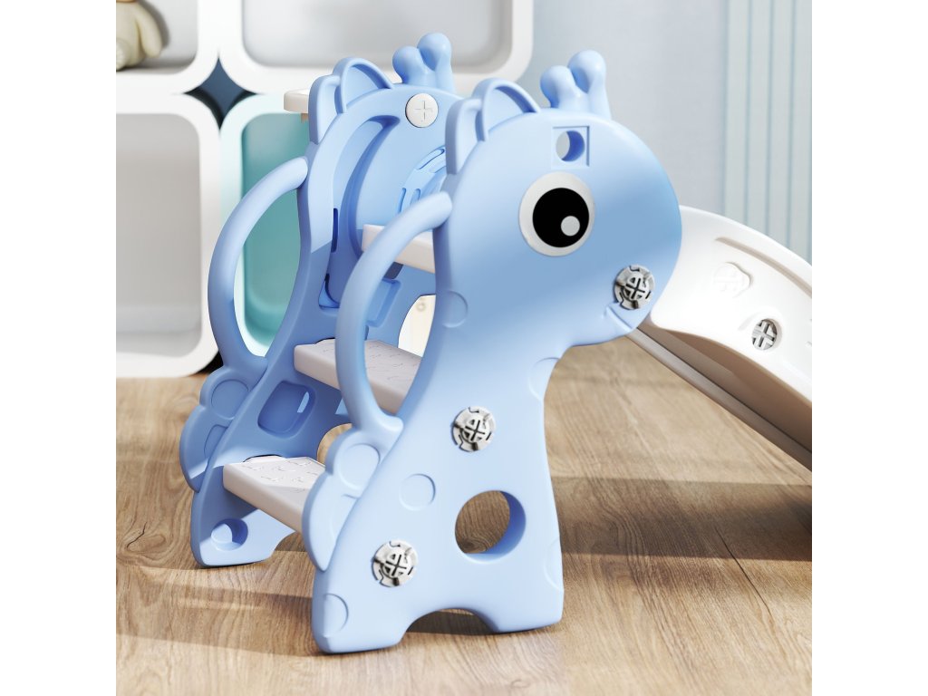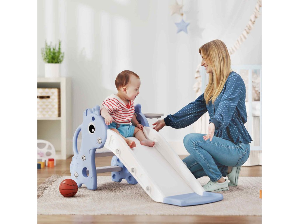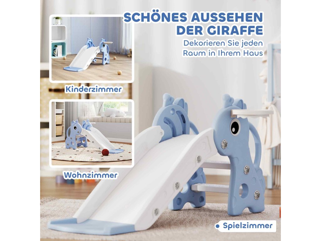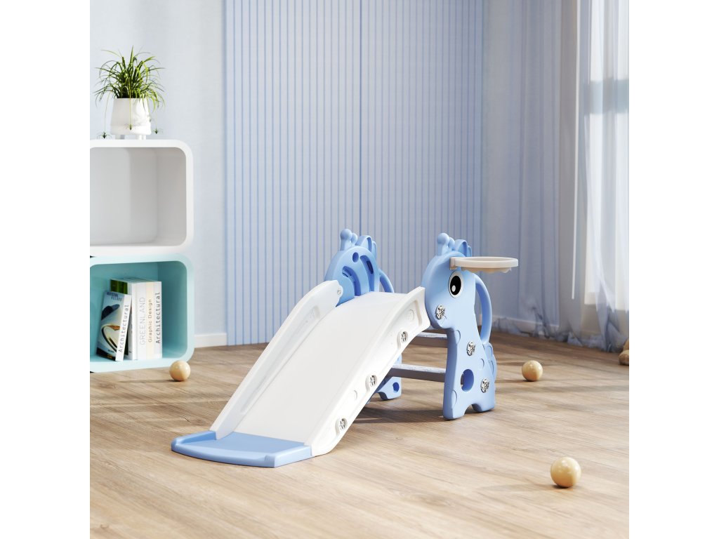 AIYAPLAY skluzavka 3 v 1 pro děti, tvar žirafy, basketbalový koš, míč, modrá barva