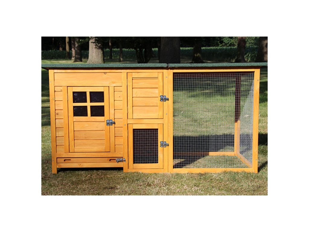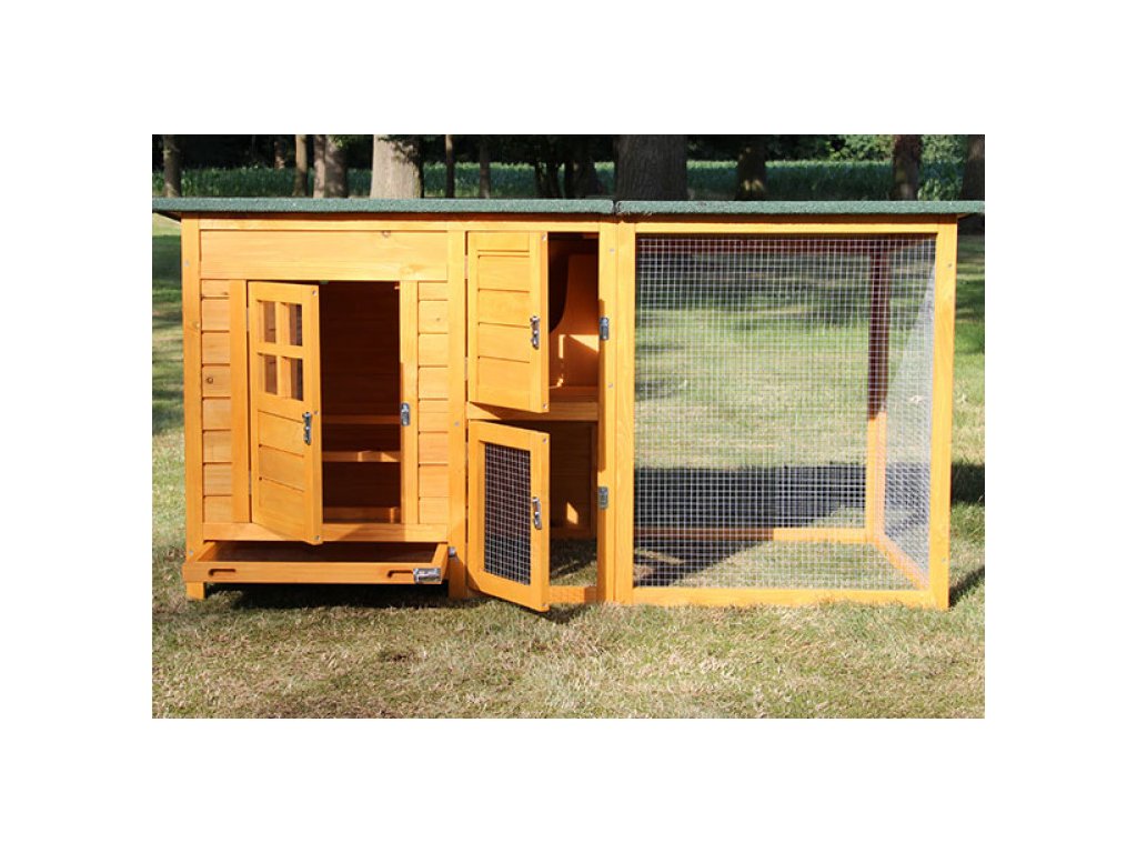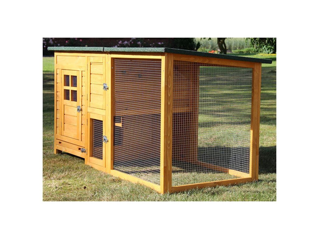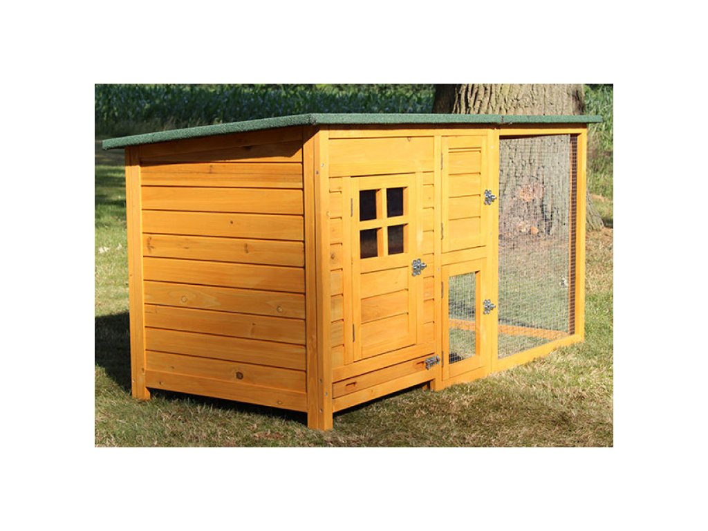 Kvalitní kurník ze smrkového dřeva poskytuje úkryt a pěkné prostředí až pro 6 slepic. Kurník se skládá z prostorného výběhu a vnitřní části. Uvnitř kurníku se nachází dva hřady a snáškové dvojhnízdo. Střecha kurníku je otevírací, díky čemuž je čištění velmi jednoduché.
