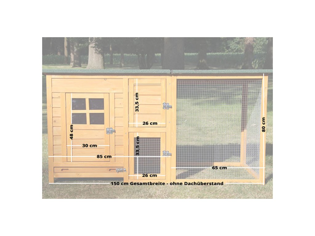 Kurník je povrchově ošetřen základním ochranným nátěrem. Pro zachování delší životnosti doporučujeme pravidelně obnovovat ochranný nátěr. Kurník by měl být ideálně umístěn tak, aby byl chráněn před nepříznivými povětrnostními podmínkami, včetně deště, sněhu, extrémního slunečního záření a větru.