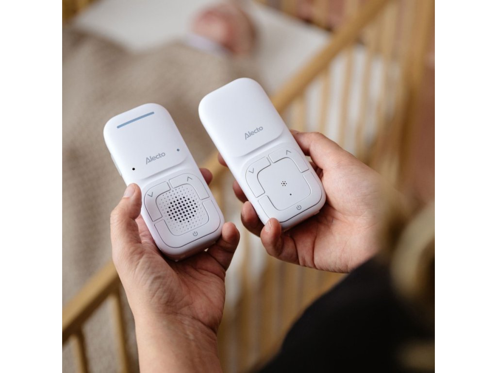 S dětskou chůvičkou DBX130 z nejnovější řady audio chůviček Alecto si domů přinesete spolehlivou, moderní a všestrannou dětskou chůvičku vybavenou veškerým potřebným komfortem. Tato dětská chůvička Full Eco DECT vám jako rodiči nabízí nejen křišťálově čistou kvalitu zvuku, ale také 100% bezporuchové a bezpečné připojení. Ať už jste na zahradě nebo na jiném patře domu, dlouhá pohotovostní doba a široký dosah zajistí, že budete se svým dítětem neustále ve spojení. Její ultramoderní design se bez problémů hodí do jakéhokoli interiéru, zatímco praktický barevný LED indikátor okamžitě zobrazuje hladinu hluku v dětském pokoji. Citlivost mikrofonu dětské jednotky lze navíc nastavit podle vašich preferencí. Stručně řečeno, s Alecto DBX130 si vybíráte produkt vynikající kvality za atraktivní cenu.