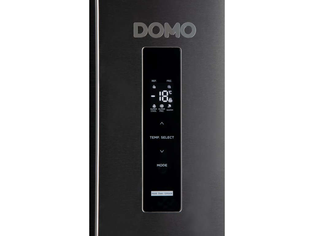 Chladnička s mrazničkou DOMO DO99506M nabízí velkorysý úložný prostor o objemu 555 litrů (349 l chladicí část, 206 l mrazicí část).