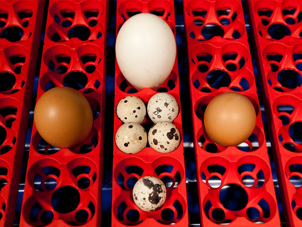 Kapacita s otočným roštem: 24 slepičích, 96 křepelčích, 24 husích, 24 kachních nebo 24 bažantích vajec.