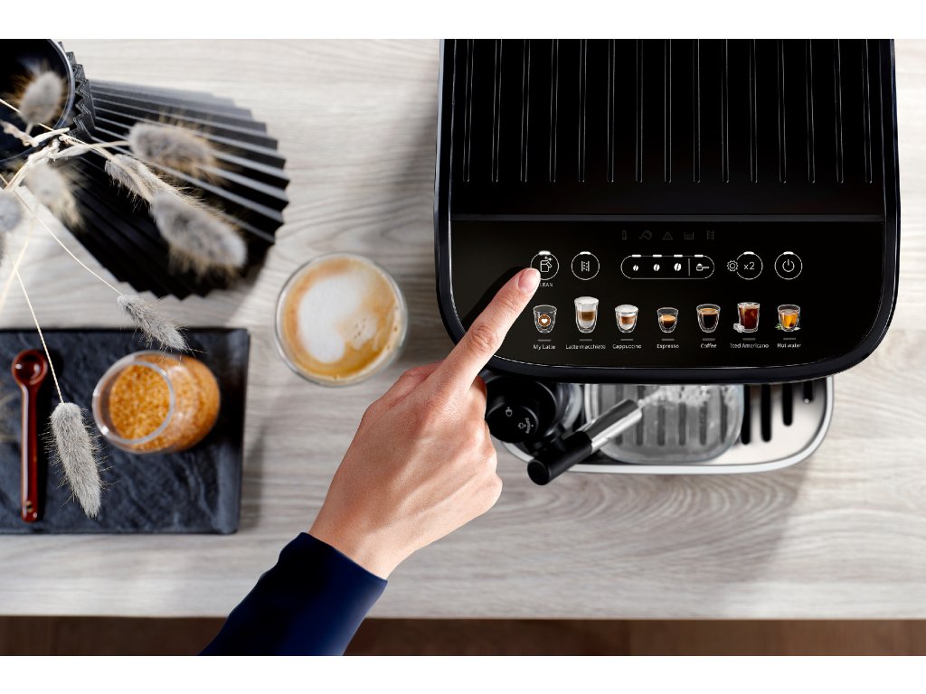 Objevte intuitivní ovládací panel s barevnými tlačítky pro přímou volbu svého oblíbeného nápoje. Aby však byla káva připravena vždy podle vaší chuti, je možné nastavit velikost a intenzitu kávy. Díky funkci "My Latte" si navíc můžete přizpůsobit váš oblíbený mléčný nápoj podle libosti a následně uložit do paměti přístroje. V nastavení je také možnost zvolit požadovanou teplotu vody pro přípravu nápoje.