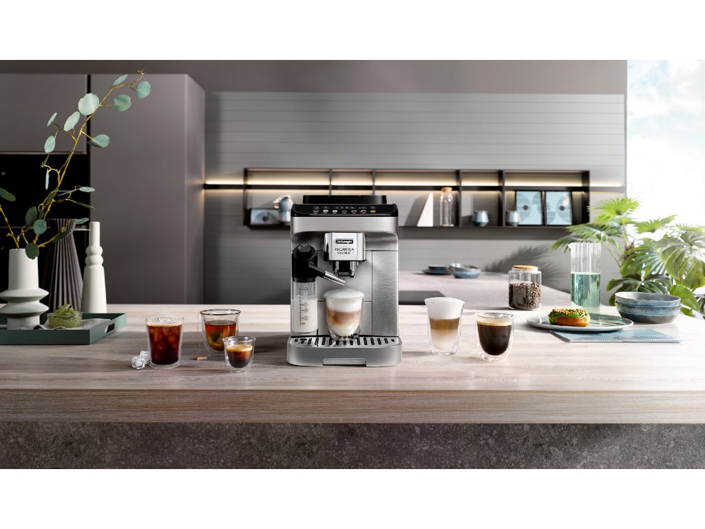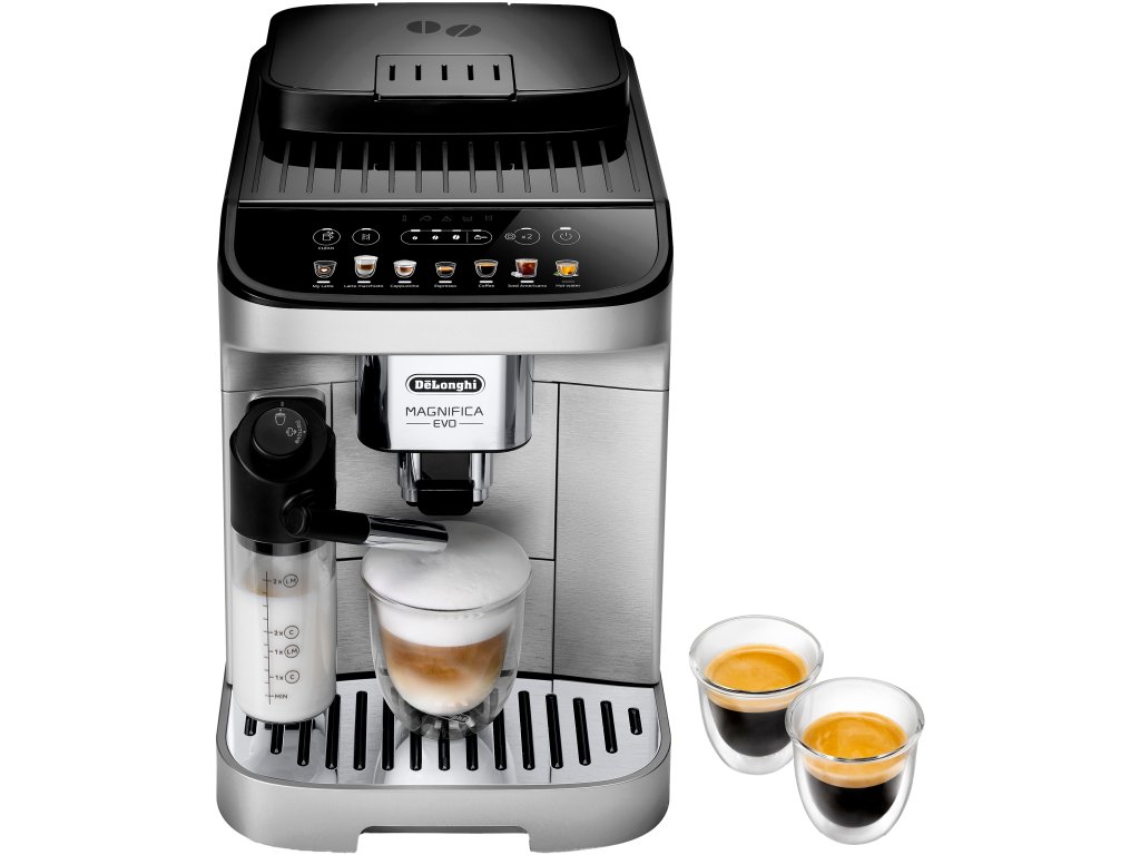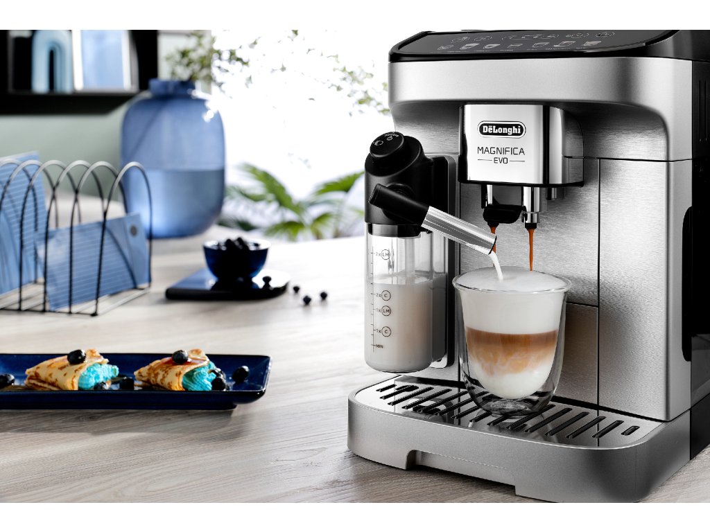 S kávovarem De'Longhi Magnifica Evo si vynikající kávu připravíte jedním stisknutím v pohodlí domova. Objevte intuitivní ovládání s barevnými tlačítky pro přímou volbu svého oblíbeného nápoje. Díky jedinečnému systém pěnění mléka LatteCrema Hot bude vaše mléčná káva chutnat dokonale. S novou funkcí “My Latte“ si navíc můžete svůj mléčný nápoj přizpůsobit podle libosti a uložit do paměti.