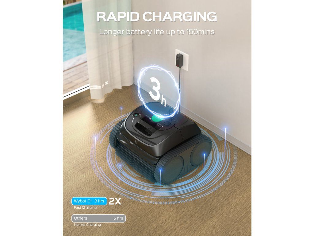 Inteligentní čištění bez námahy Zapomeňte na ruční čištění bazénu. WYBOT C1 je moderní robotický vysavač, který se postará o kompletní údržbu vody za vás. Stačí jedno spuštění a vysavač začne systematicky čistit celý bazén – rychle, efektivně a bez zbytečné práce. Díky chytré navigaci se pohybuje promyšleně a pokrývá maximální plochu bez zbytečných přejezdů. Výsledkem je rychlejší čištění a lepší efekt než u běžných vysavačů. Silný sací výkon v kombinaci s kartáči uvolní i usazené nečistoty a zachytí je ve filtračním koši. Váš bazén tak zůstane dlouhodobě čistý a připravený k použití. Bezdrátové provedení navíc znamená maximální komfort – žádné kabely, žádné omezení pohybu, jen jednoduché a pohodlné použití. Klíčové vlastnosti: Automatický bazénový vysavač pro kompletní čištění Čistí dno, stěny i vodní linku Bezdrátový provoz bez kabelů Výdrž až 120–150 minut Inteligentní navigace (gyroskop) Ovládání a nastavení přes mobilní aplikaci Výkonný trojitý motor Filtrace 180 μm Vhodný pro bazény cca 120–150 m² 5 vychytávek, které oceníte Vhodný pro všechny typy bazénů Ať už máte kulatý, obdélníkový nebo nepravidelný bazén, WYBOT C1 si poradí s každým tvarem. Díky chytré navigaci efektivně pokryje celou plochu a přizpůsobí se podmínkám v bazénu.Extra velký filtrační koš Vyjímatelný filtrační koš se síťovou filtrací o jemnosti 180 μm spolehlivě zachytí běžné nečistoty jako listí, písek nebo drobné usazeniny. Díky velkému objemu pojme více nečistot a jeho čištění je rychlé a jednoduché.Silný výkon a dvojité kartáče Dva rotační kartáče uvolní i odolné nečistoty ze dna i stěn bazénu, zatímco 3 výkonné motory zajistí jejich okamžité nasátí. Výsledkem je důkladné čištění během jednoho cyklu.Přehledný LED indikátor stavu Barevný LED indikátor vám okamžitě ukáže stav zařízení – provoz, nabíjení i plně nabitou baterii. Máte tak vždy přehled o tom, kdy je vysavač připraven k použití.Automatické zastavení u stěny Po dokončení se vysavač sám zastaví u okraje bazénu, takže ho snadno vytáhnete. Technické parametry:Typ čištění: dno + stěny + vodní linka Doba provozu: 120–150 min Doba nabíjení: cca 3 h Baterie: Li-ion 21,6 V / 4600 mAh Výkon: 65 W Filtrace: 180 μm Průtok: 11,5 m³/h Rychlost: až 16 m/min Navigace: gyroskop Připojení: WiFi + Bluetooth Hmotnost: 8 kgObsah balení:Robotický bazénový vysavač Nabíječka Filtrační koš Podpůrné plováky Hák pro vytažení z vody Manuál + rychlý startProč je výhodné a bezpečné nakupovat bazénový sortiment od společnosti CF GROUP V oblasti bazénové techniky nehraje roli jen cena, ale především zkušenost, technické zázemí a dlouhodobá odpovědnost za produkt. CF GROUP patří mezi zavedené evropské výrobce a distributory bazénového sortimentu s historií přesahující více než 60 let. To znamená stabilitu, know-how a reálné zkušenosti z tisíců instalací po celé Evropě.Dlouholetá tradice a evropská výroba Skutečný vývoj a technické know-how Bezpečnost a normy Servis a náhradní díly Kompletní sortiment pod jednou střechou Odborné poradenstvíDoplňkové parametry