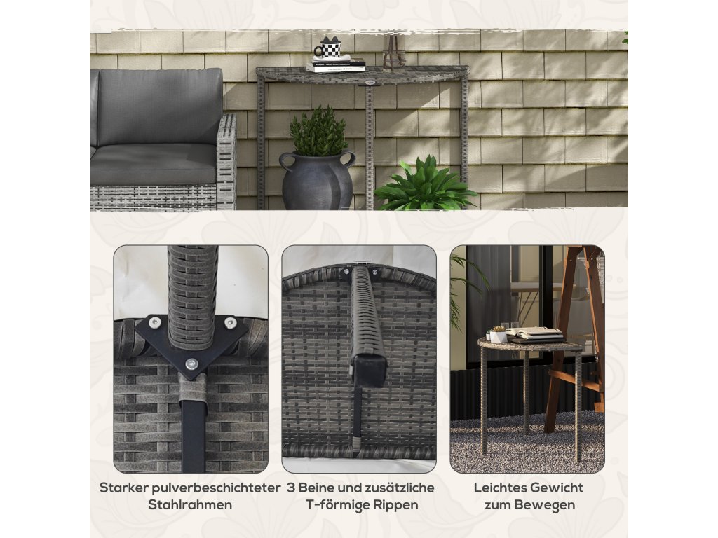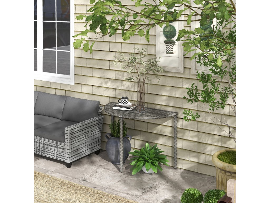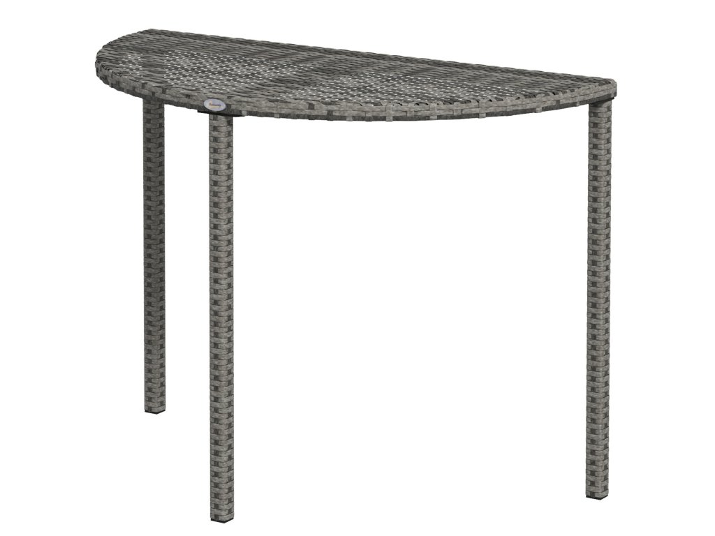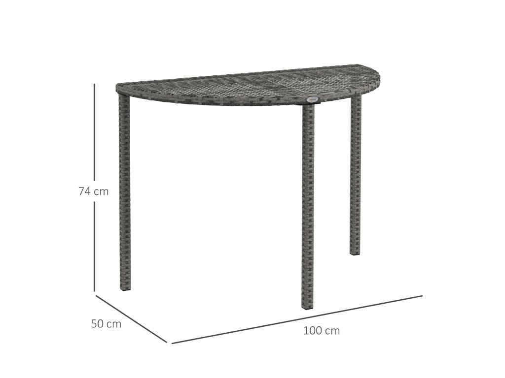 Balkónový stolek Outsunny, půlkruhový, polyratan+kov, 100x50x74 cm, šedý