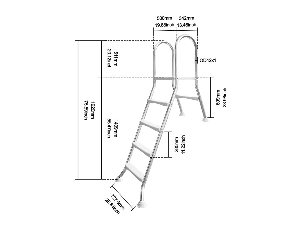 Bazénové schůdky NEOVA 120 cm - nerezová ocel Naše bazénové schůdky NEOVA 120 cm jsou ideální volbou pro částečně zapuštěné bazény s hloubkou vody 120 cm. Tyto schůdky jsou vyrobeny z kvalitní nerezové oceli AISI304 a zaručují dlouhou životnost a odolnost proti korozi. Díky protiskluzovým schodnicím a pevným nohám jsou schůdky bezpečné a stabilní i při vyšším zatížení. Hlavní vlastnosti:Materiál: Vysoce kvalitní nerezová ocel AISI304 pro maximální odolnost vůči korozi. Protiskluzové schodnice: Schůdky jsou vybaveny protiskluzovými schodnicemi, které zajišťují bezpečný vstup i výstup z bazénu. Stabilita: Schůdky mají 1 schod na vnější straně a 4 schody na vnitřní straně bazénu, což usnadňuje pohodlný a bezpečný přístup. Kapacita: Schůdky jsou navrženy pro nosnost až 150 kg, což je zajištěno stabilní konstrukcí a pevným plastovým stupněm. Vhodné pro částečně zapuštěné bazény: Schůdky jsou ideální pro bazény s hloubkou vody 120 cm.Technické parametry:Materiál: Nerezová ocel AISI304 Počet schodů: 4 schody na vnitřní straně a 1 schod na vnější straně bazénu Protiskluzové schodnice Maximální nosnost: 150 kg Vhodné pro bazény s hloubkou vody 120 cmStabilní podložky z gumy na nožkách, které chrání bazénovou fólii před poškozenímPoznámka: Schůdky NEOVA 120 cm jsou určeny pro sladkou vodu. Při použití ve slané vodě nebo u bazénů s elektrolytickým solným systémem je možné, že dojde k degradaci materiálu v důsledku chloridové koroze nebo rezivění.Doplňkové parametry